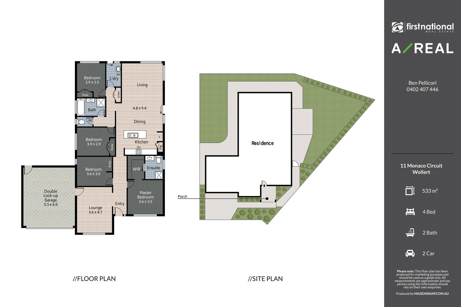 Modern elegance in a prime locationStep into contemporary living at 11 Monaco Circuit. Boasting four bedrooms and two bathrooms, this residence exudes style and comfort, that you'll notice as soon as you arrive at the address and look at its incredible curb appeal.The main suite is a private retreat, complete with an en-suite bathroom and a spacious walk-in robe. Meanwhile, the remaining bedrooms offer built-in robes and share a beautifully designed bathroom with a separate toilet, ensuring privacy and convenience for all.The heart of the home is the open-plan kitchen, dining, and living area. The kitchen is a chef's dream, featuring an island that's not only perfect for meal preparation but also for casual dining and pre-dinner gatherings. Modern finishes and fixtures throughout the home reflect a high level of craftsmanship and design.At the front of the house, a welcoming lounge provides an additional space for relaxation or entertaining guests. Practicality is key, with laundry facilities and a linen closet for added convenience.For those with multiple vehicles or in need of extra storage, the double lock-up garage offers ample space. This property's prime location ensures you're close to Fulham, Allans, Bellavista, and Empress Parks, providing endless opportunities for outdoor activities and leisure. Sports enthusiasts willappreciate the proximity to Epping Stadium.Experience the perfect blend of contemporary living and convenience, arrange your inspection today! *Photo ID required at all First National South Morang open for inspections and auctions. First National South Morang may refuse to provide further information on the property should you prefer not to disclose your full contact information including phone number.**Note: Some images used have been virtually staged.Disclaimer: We have in preparing this document used our best endeavours to ensure that the information contained in this document is true and accurate, but accept no responsibility and disclaim all liability in respect to any errors, omissions, inaccuracies or misstatements in this document. Prospect purchasers should make their own enquiries to verify the information contained in this document. Purchasers should make their own enquires and refer to the due diligence check-list provided by Consumer Affairs.