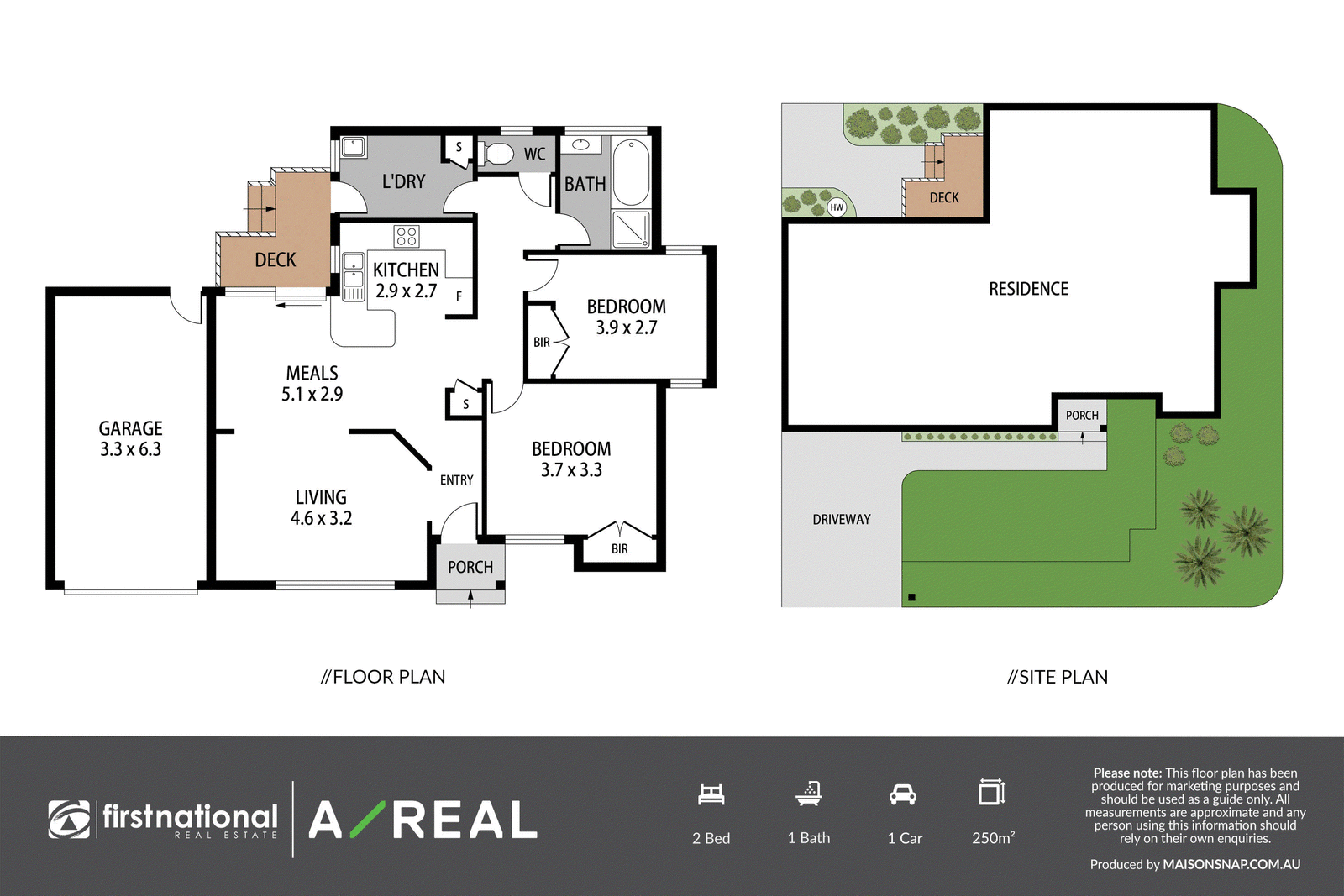 The home features two generously sized bedrooms, both equipped with built-in robes. The bathroom is well-designed for both practicality and style, while the spacious kitchen and meals area offers a great space for cooking and entertaining.