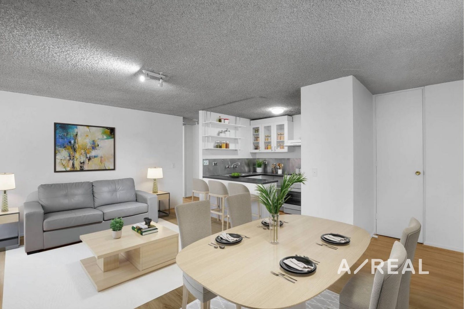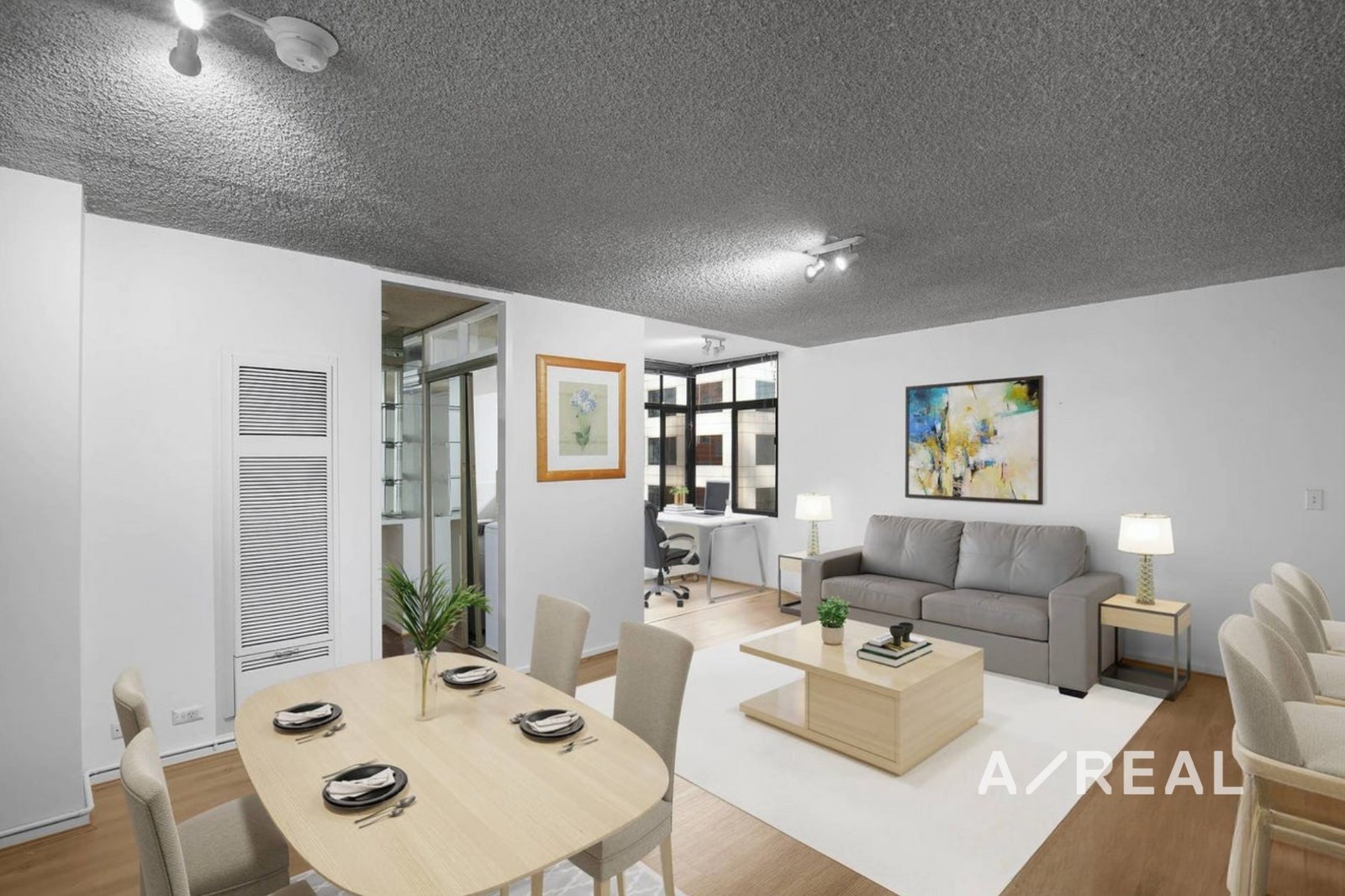 Unfurnished and ready for immediate occupancy, the apartment features a light-filled open-plan living and dining area with large windows that create a warm and inviting atmosphere. The enclosed balcony overlooks the quieter section of Evans Lane, providing a peaceful retreat right in the heart of the city.