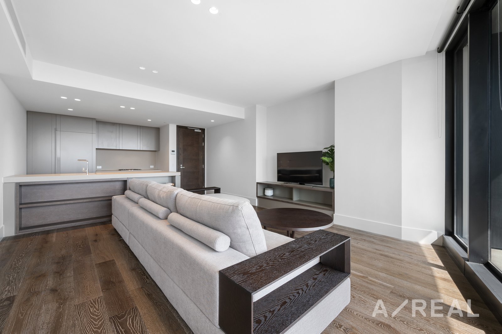 This exquisite fully furnished 2-bedroom apartment boasts a light color scheme and features Gaggenau kitchen appliances (cooktop, oven & integrated dishwasher), Stone Benchtop and splashback, Timber flooring in the kitchen & living area, and carpet in both bedrooms with spacious built-in robes. The master bedroom comes with an ensuite, and there's a convenient European Laundry. Both bathrooms are adorned with tile flooring and full-height tile walls. Floor-to-ceiling windows allow abundant natural light, enhancing the apartment's ambiance..