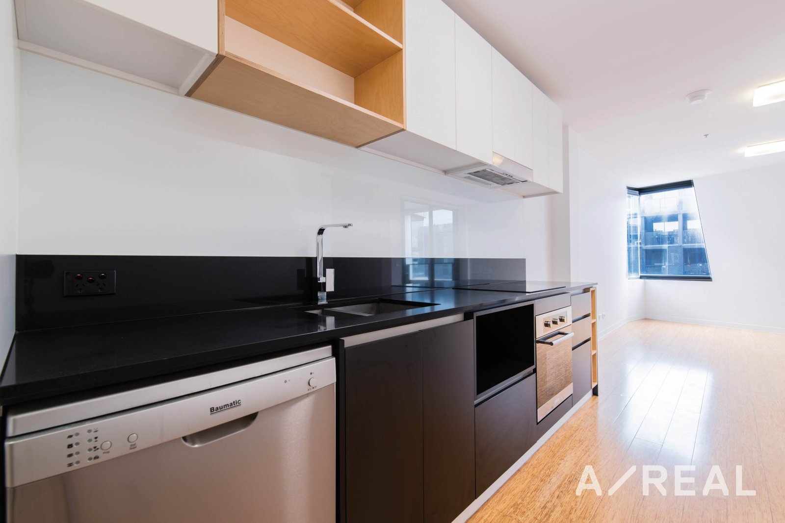 This delightful apartment boasts a sparkling kitchen with Ample cupboard space and Stainless steel cooking appliances with Dishwasher, Stone bench tops, and Glass splashbacks