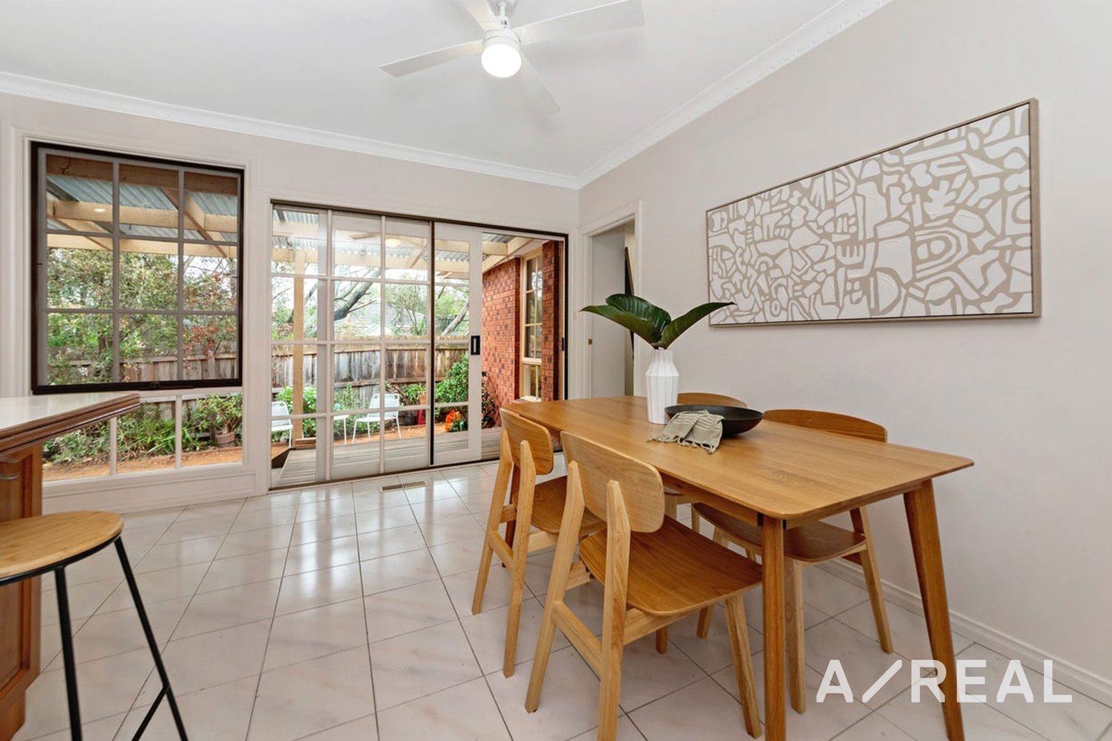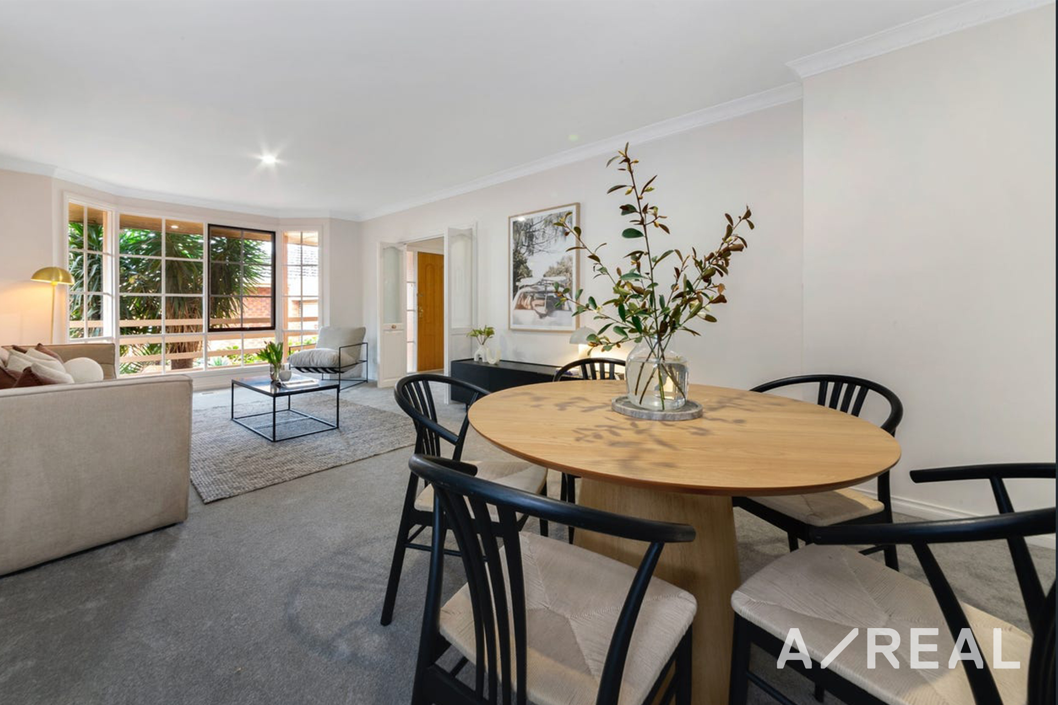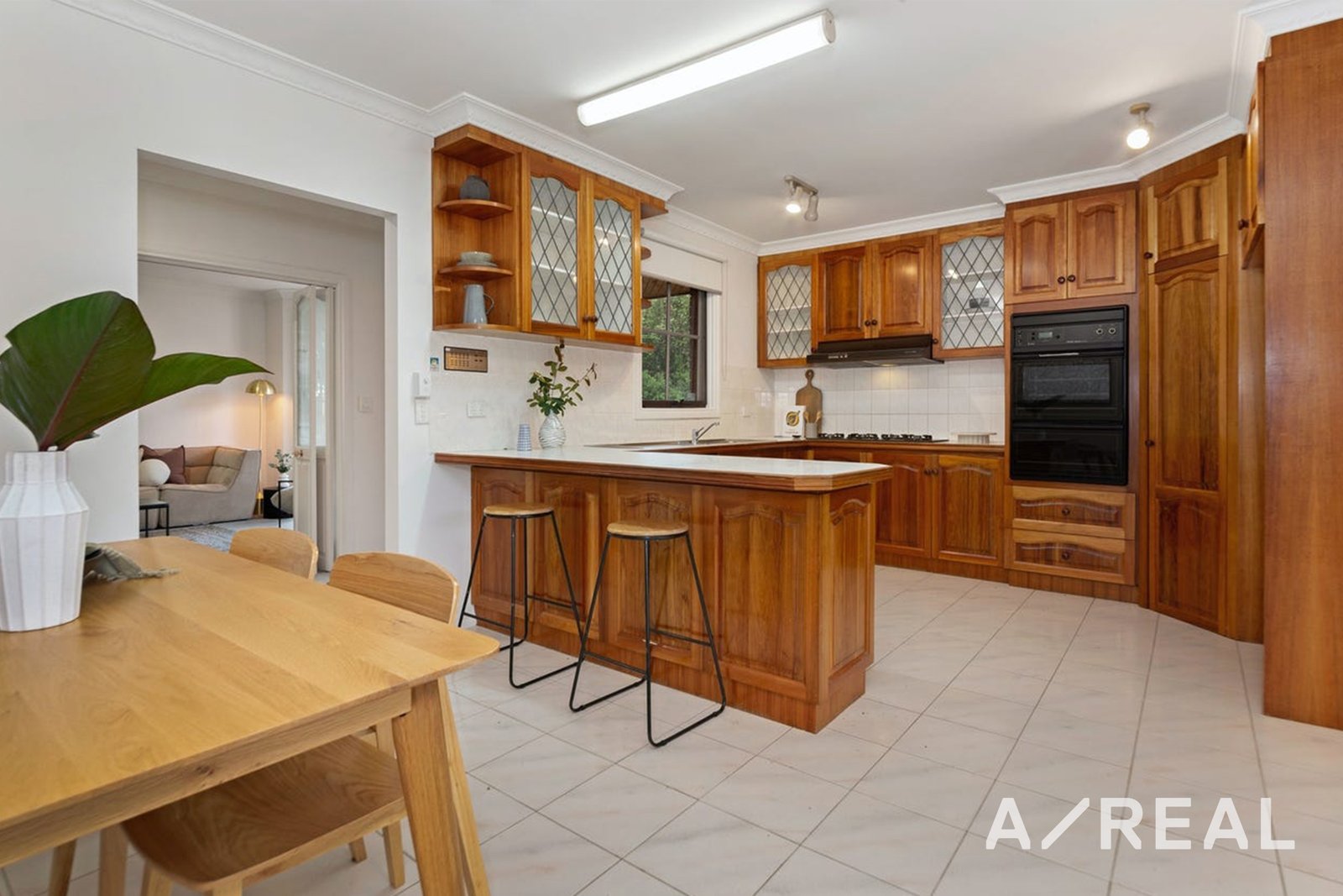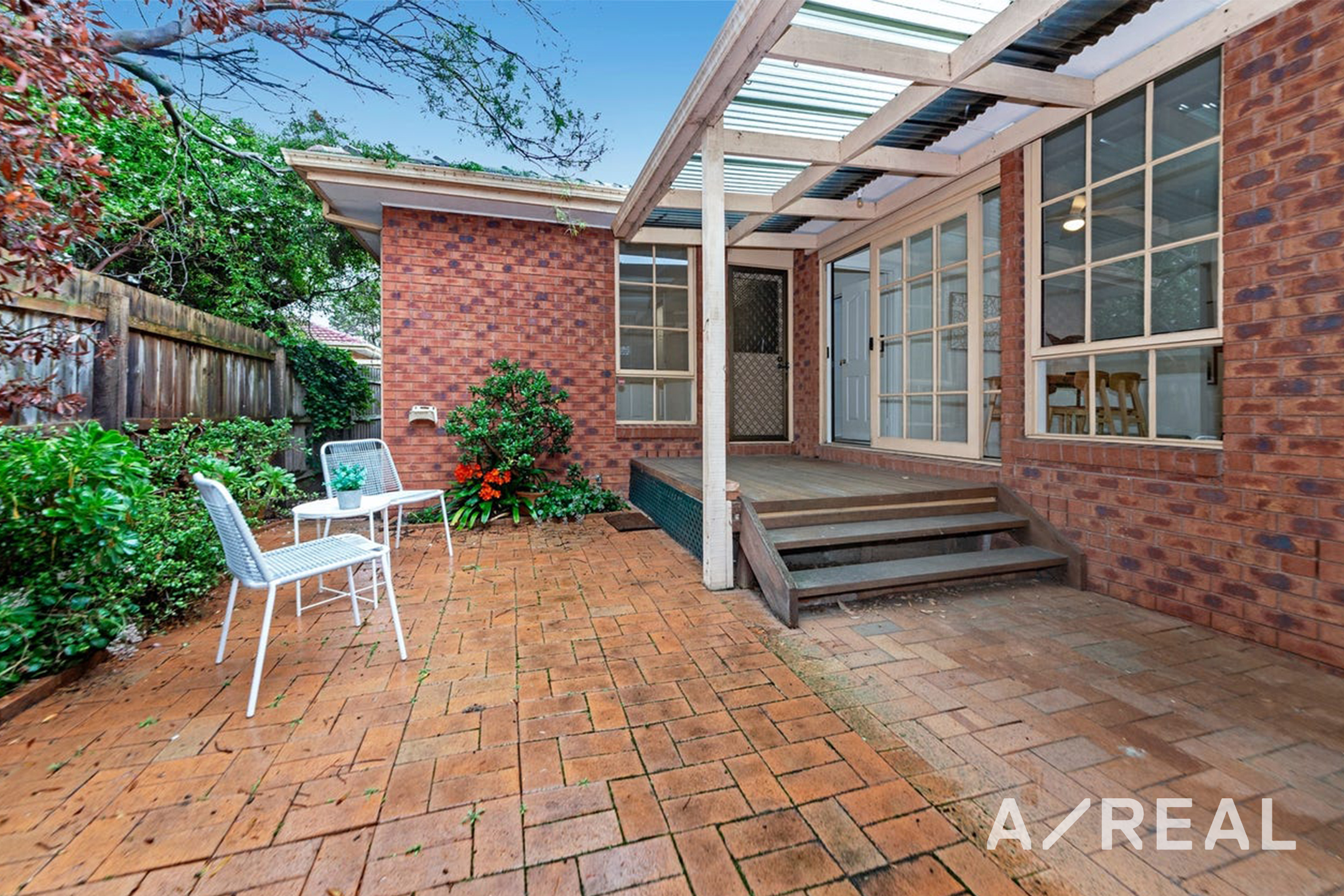Step into a home that feels brand new, with plush new carpeting and a fresh coat of paint. The spacious living and dining area is a comfortable space for both quiet relaxation and entertaining guests, featuring a charming bay window. A casual meals area, perfect for family gatherings, flows seamlessly into the inviting timber kitchen.