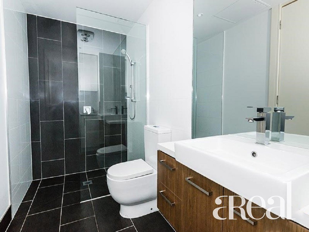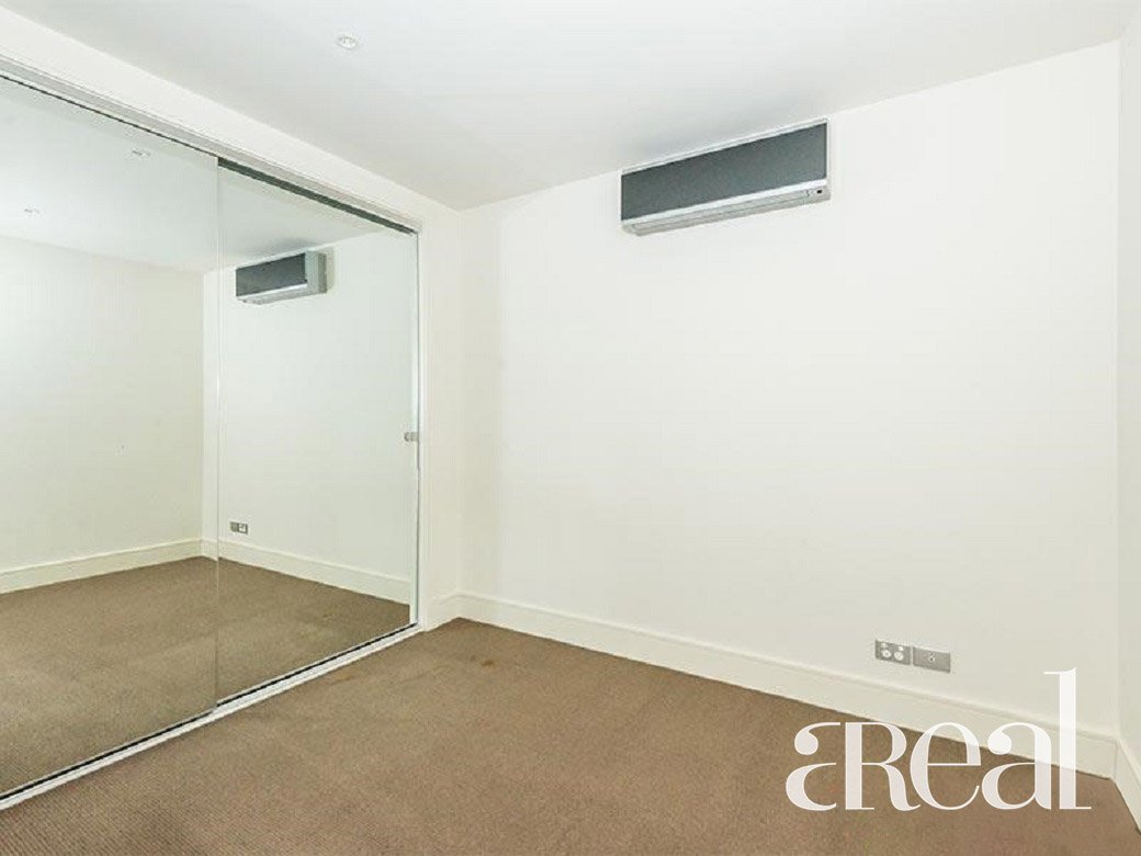 A modern apartment with light-filled open plan living area features gorgeous European oak parquetry flooring, Samsung split system heating and cooling in all rooms, and a European laundry. The kitchen is complimented by ample cupboard space, Miele Stainless steel gas/ electric cooking appliances, Miele dishwasher, Caesar stone bench tops and polished mirror splashbacks.The elegant bathroom features clear glass frameless shower screens with modern styling.