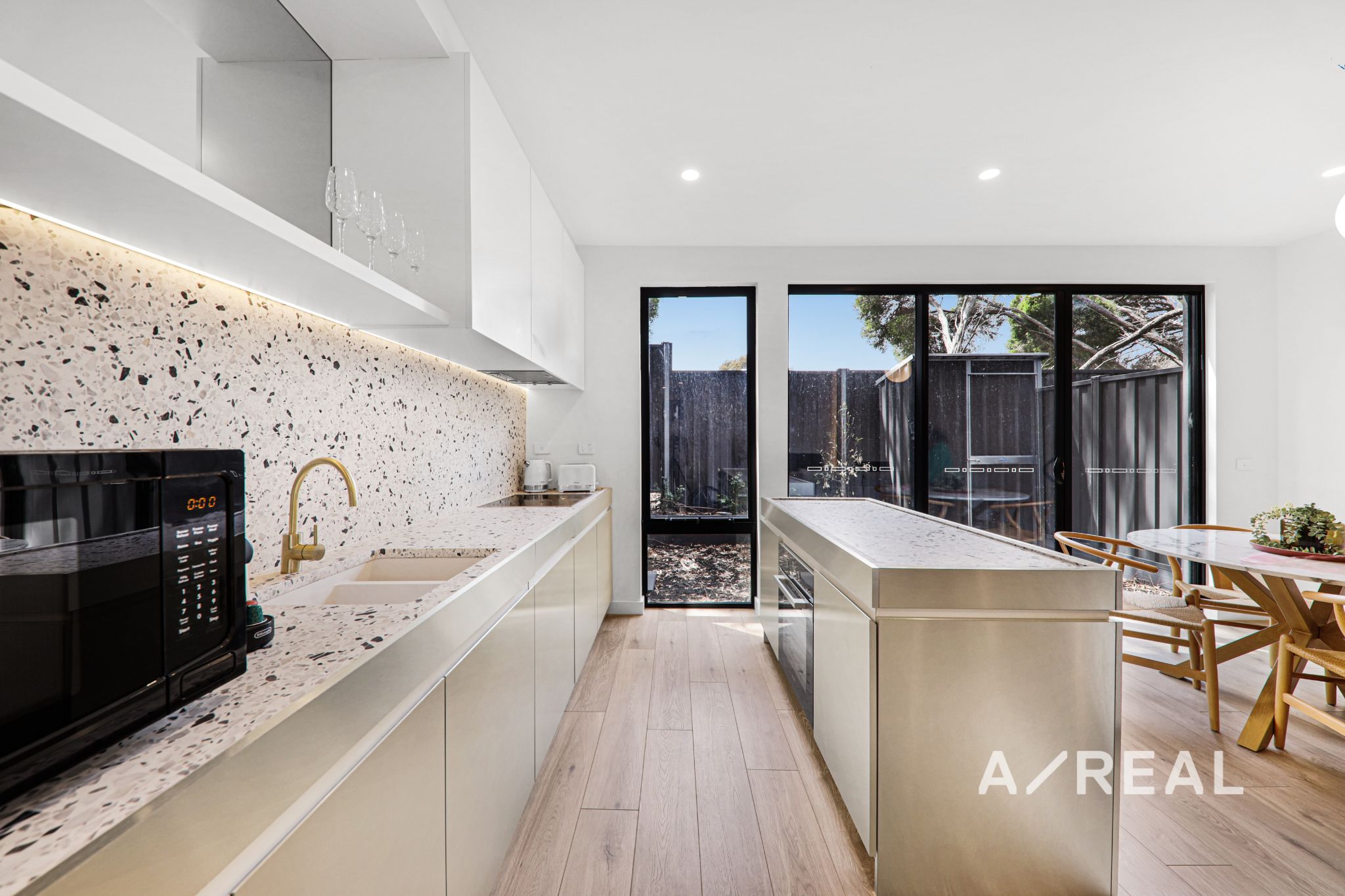 Set atop beautiful engineered timber flooring, the home is primed for casual nights in or celebrating with loved ones. Taking a holistic year-round approach, cosy up by the gas log fireplace in winter, or soak up the sun in the private rear yard in warmer months, ideal for alfresco dining and summer barbecues. The state-of-the-art galley-style kitchen showcases quality appliances, including cooktop and oven, and dishwasher. Completing the picture, a deep double sink, an abundance of storage throughout encased in finger-recessed joinery, topped with terrazzo stone benchtops. Upstairs, the home's two sleep sanctuaries are zoned to this level, promoting maximum rest and rejuvenation. The palatial master suite enjoys a walk-in robe through to a private ensuite with a bathtub, while the second bedroom is fitted with a built-in robe, maximising storage capabilities. Centrally located, the sparkling bathroom is adorned with elegant floor-to-ceiling wall tiling, frameless glass shower, vanity with storage, and a sleek in-wall cistern toilet. Striking a balance between elegance and practicality, enjoy getting ready for the day, or unwinding at the end of the week. Other features include reverse-cycle split-system heating and cooling for year-round comfort, single lock-up garage with internal access, separate storage shed, and European laundry.