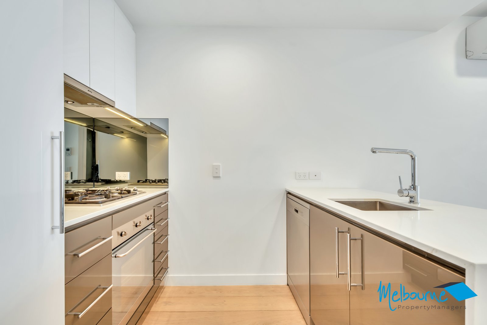 A fabulous 1 bedroom apartment, featuring stylish hardwood timber flooring and ample storage space. The air-conditioned living space is well designed with glass sliding doors opening to your own private balcony creating a spacious open and bright atmosphere that is guaranteed to impress. The carpeted bedroom is generous in size and has built-in robes for your storing needs. The state of the art kitchen has stone benchtops, a tiled splashback, gas appliances and a dishwasher. The apartment also offers a large modern bathroom, with a separate European laundry facility.