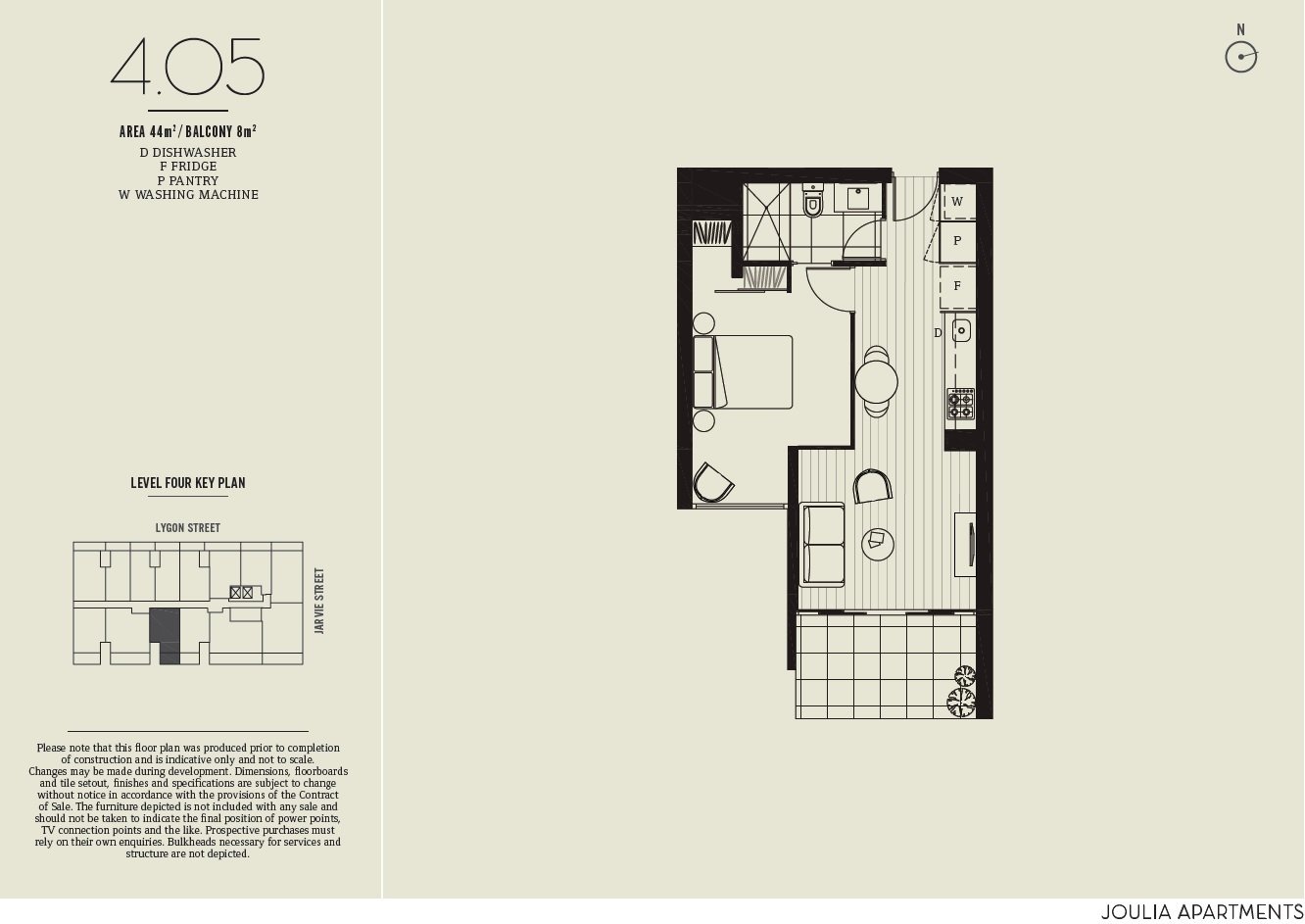 This very modern apartment features, kitchen with ample storage and benchtops, flowing on to the open plan living area that leads out to your private balcony. The carpeted bedroom with floor to ceiling mirrored robes is larger than most and bathroom boasts a frame less shower and European laundry.