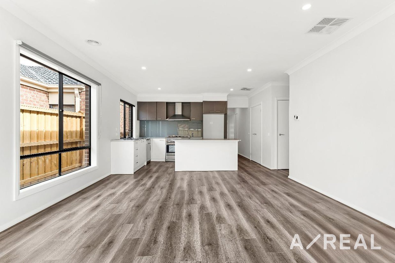 Step inside to discover elegant timber laminate flooring in key living areas, plush carpets in the bedrooms, and block-out blinds throughout. Two spacious lounge rooms provide ample space for relaxation, while the stylish kitchen, complete with a 900mm gas cooker, dishwasher, canopy rangehood, glass splashback, and island bench, is perfect for family meals and entertaining.