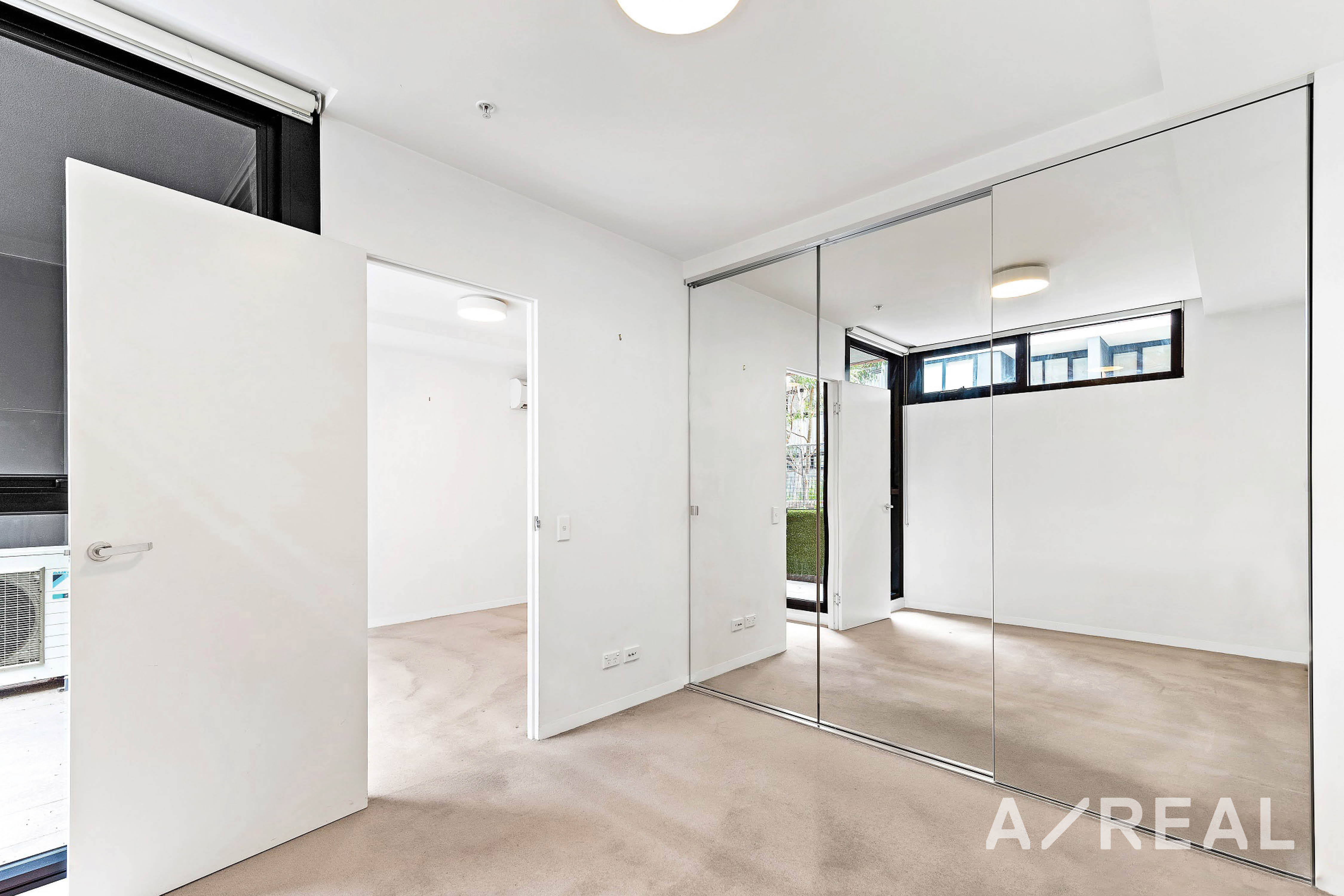 This elegantly designed one bedroom apartment located on the ninth floor comprises of a modern design, colour scheme and features including a living area with split system heating and cooling, block out blinds, a kitchen with stainless steel gas cooking appliances, island bench, stone bench tops, dishwasher, plenty of storage, carpeted bedroom with mirrored built in robes, a bathroom with modern design and storage and a private balcony. The apartment also includes a secure basement car space (no stacker) with remote control access as well as swipe card access to the foyers and lifts with a video intercom system.