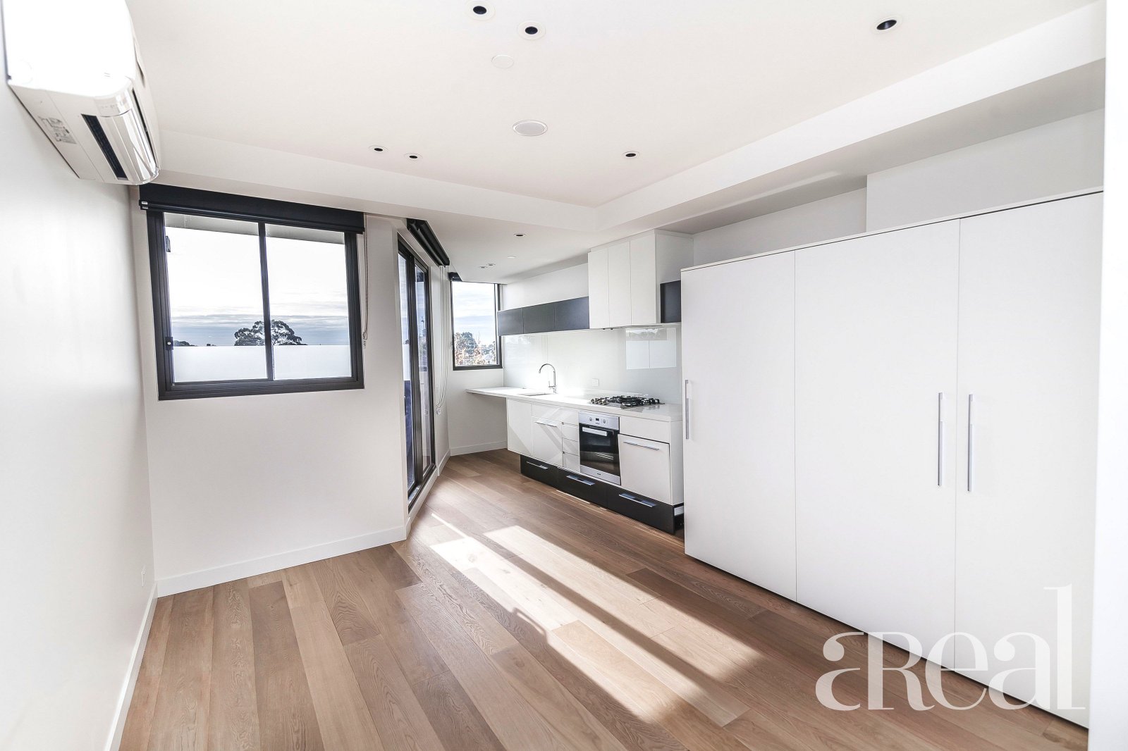 This beautiful 1 bedroom apartment features built in robes, open plan lounge/dining with Oak timber flooring, split system heating and cooling, chic kitchen with stone bench tops, Miele appliances, dishwasher and gas stove top, a beautiful sparkling bathroom with great sized shower and European laundry. Complete with balcony, secure car park, storage cage, communal garden areas and communal bike racks.