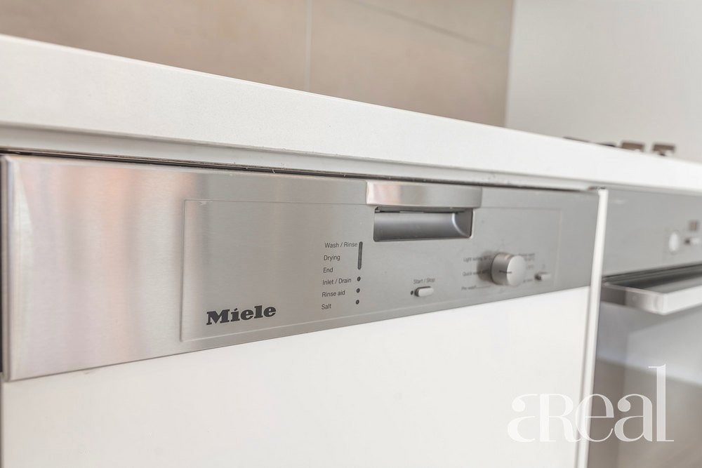 Modern kitchenette with gas appliances, stone bench tops, dishwasher, pantry and plenty of storage