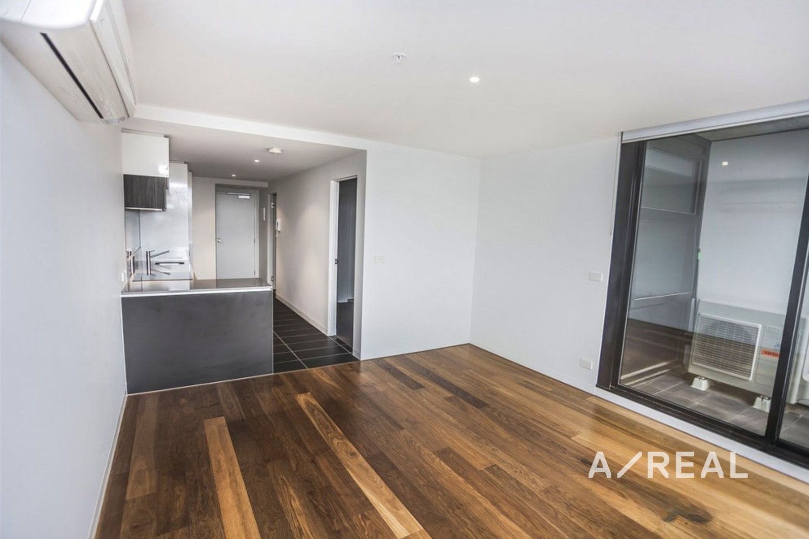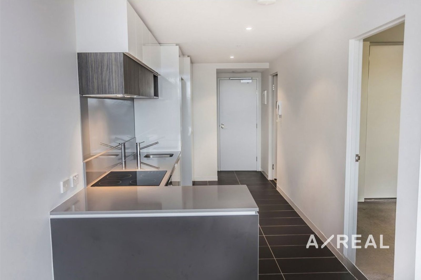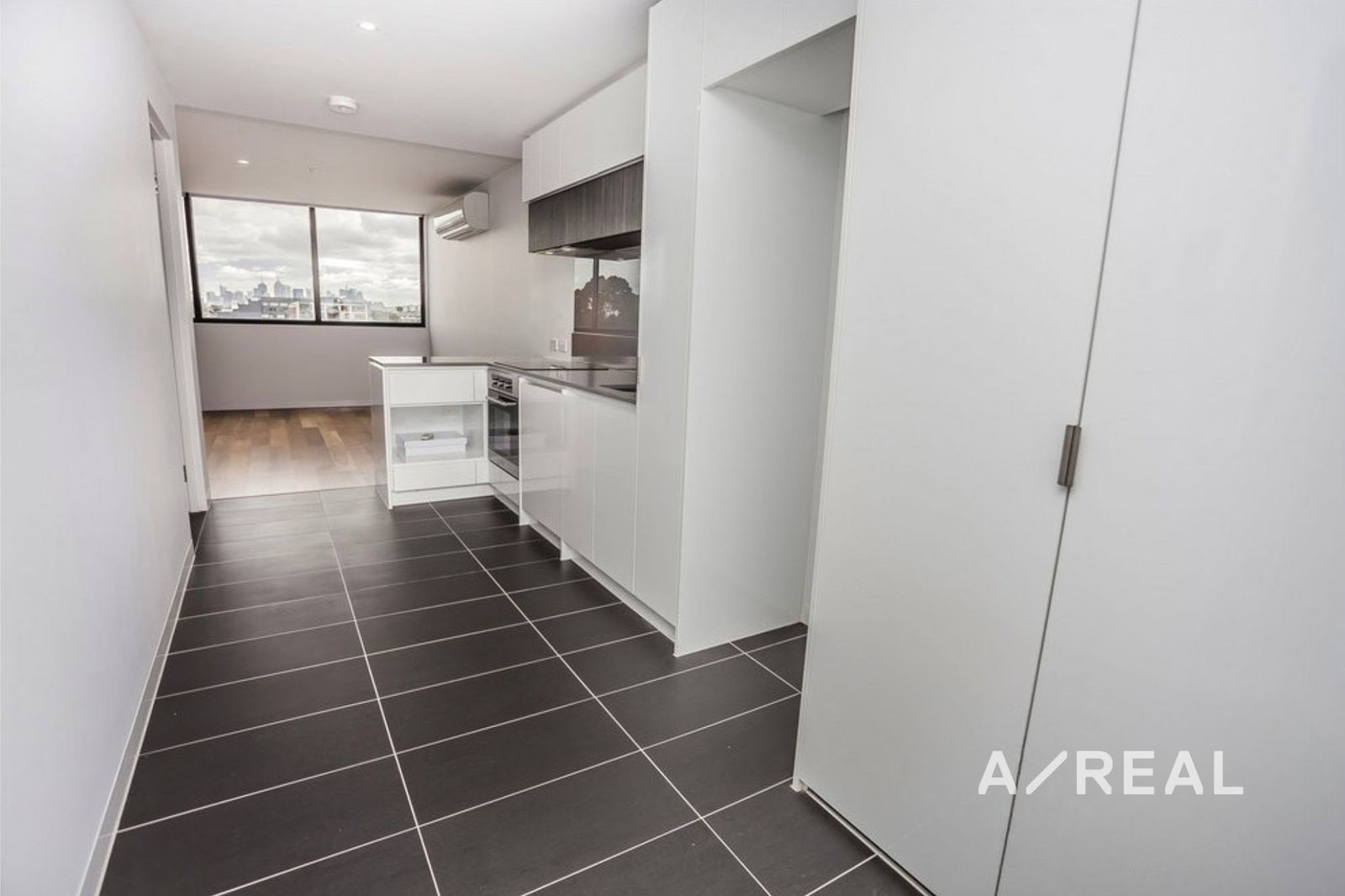 This stylish one-bedroom apartment offers premium fittings and fixtures throughout, with a generously sized living area filled with natural light. The carpeted bedroom includes built-in robes, while the fully equipped kitchen features stone benchtops and stainless steel European appliances. A sparkling modern bathroom with laundry facilities and floor-to-ceiling glass doors opens to a private balcony, completing the contemporary design.