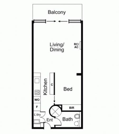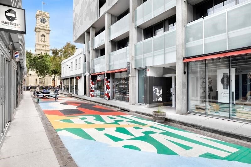 The 1 Bedroom modern apartment comprises a large air-conditioned living/dining room opening out through sliding doors to a light and bright enclosed balcony, well-equipped galley style kitchen featuring stone benches and stainless steel Smeg appliances, European laundry, stylish bathroom and bedroom with full-length robes. On the rooftop, a shared terrace and BBQ area offers a relaxing space to entertain and enjoy the sweeping city outlook.