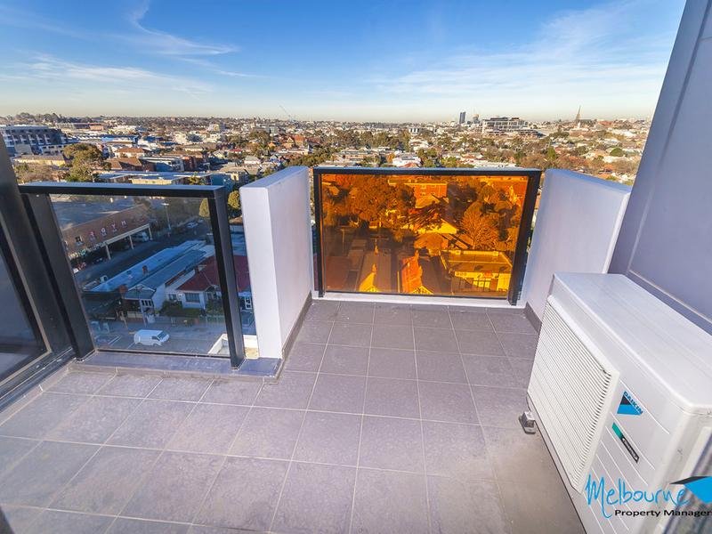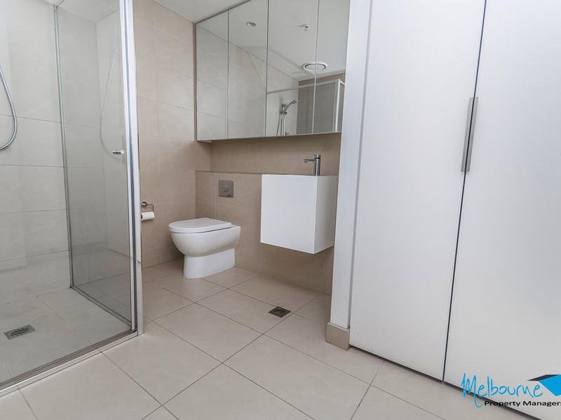 This elegantly designed one bedroom apartment located on the ninth floor comprises of a modern design, colour scheme and features including a living area with split system heating and cooling, block out blinds, a kitchen with stainless steel gas cooking appliances, island bench, stone bench tops, dishwasher, plenty of storage, carpeted bedroom with mirrored built in robes, a bathroom with modern design and storage and a private balcony. The apartment also includes a secure basement car space with remote control access as well as swipe card access to the foyers and lifts with a video intercom system.