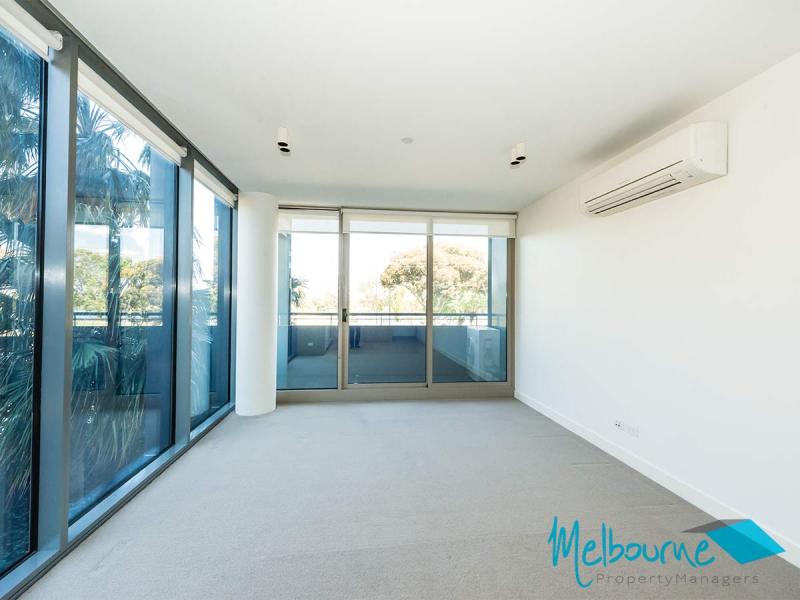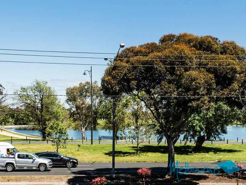 Great size open plan living with split system heating/cooling, opening onto a large sized balcony with magnificent Albert Park Lake views.