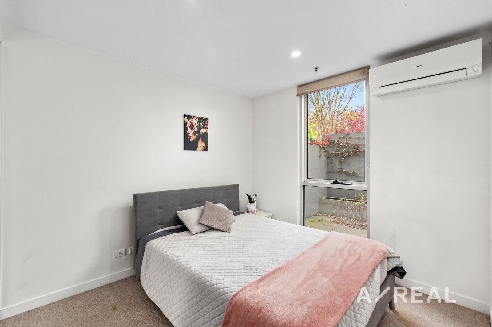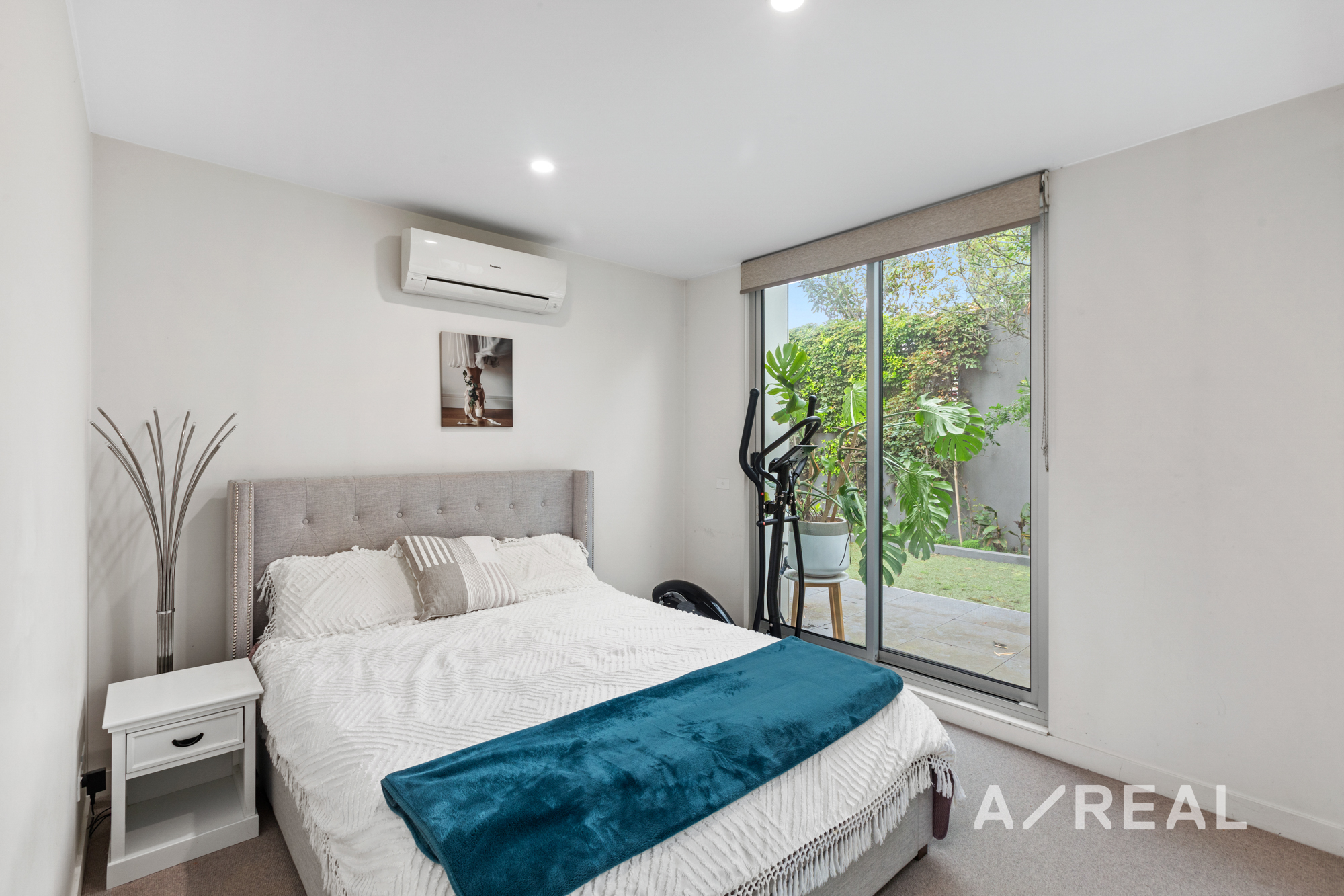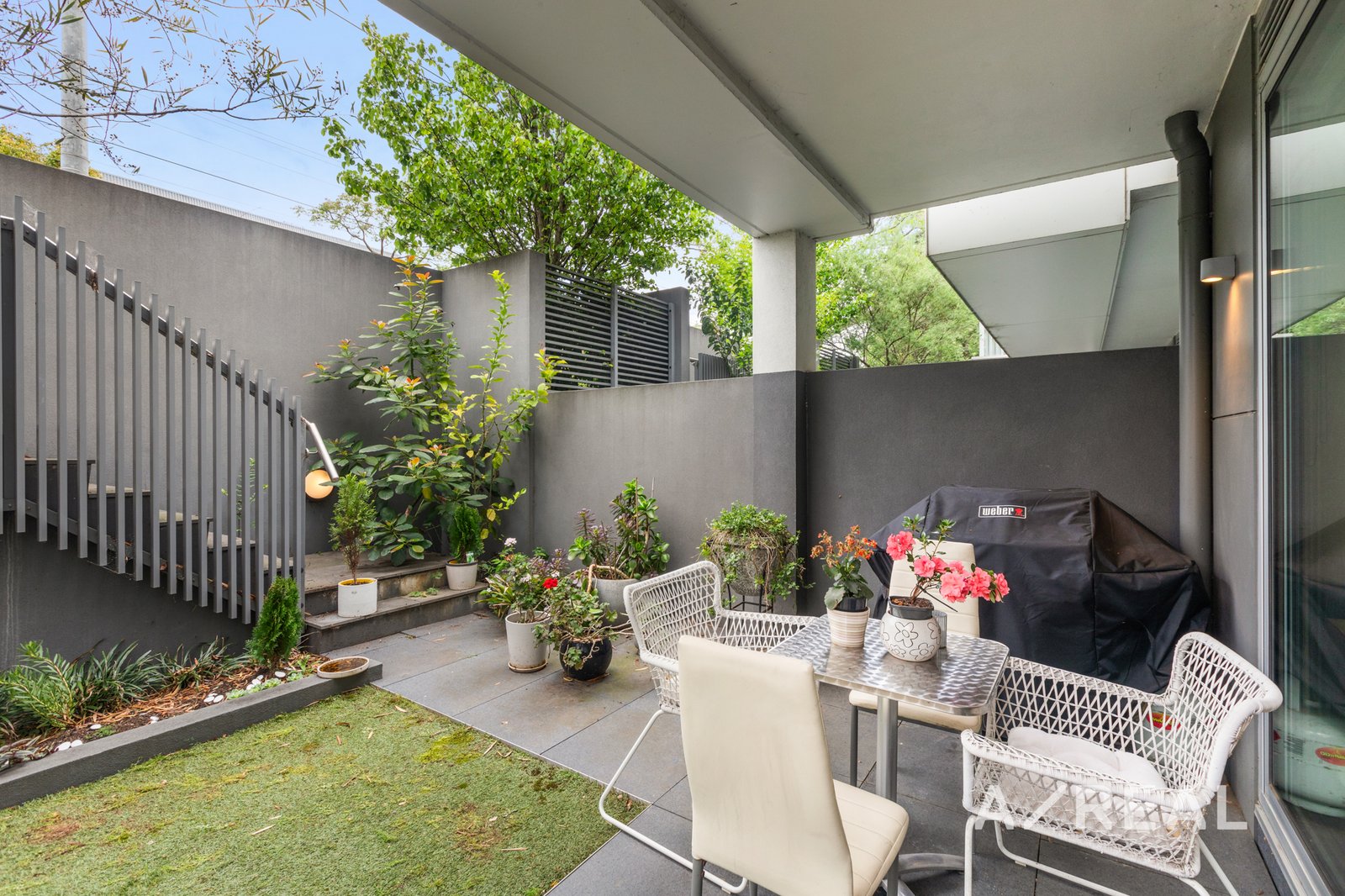 Stone-topped kitchen benches, soft close cabinetry, an under-mount sink and stainless steel gas appliances indicate a commitment to quality in a kitchen and open-plan meals/living that flows outdoors to a partly paved and partly undercover garden which more than doubles the amount of available living space. Accessed both privately and via secure video entry on Violet Grove, the apartment also features a private master bedroom ensuite, secure basement parking, as well as elevator access, mirrored robes in each bedroom and split system heating/cooling.