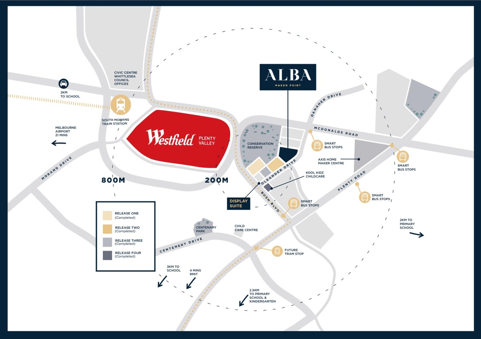 Uni Hill Factory Outlets is just around the corner giving you also a short drive from the Metropolitan Ring Road. Only 200 Meters to Westfield Plenty Valley. Taking the public transport is a no-brainer for this location because you are near the South Morang train station. Buses and trams are also available on Plenty Road.