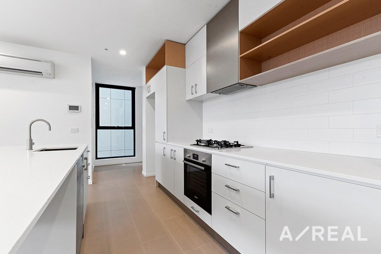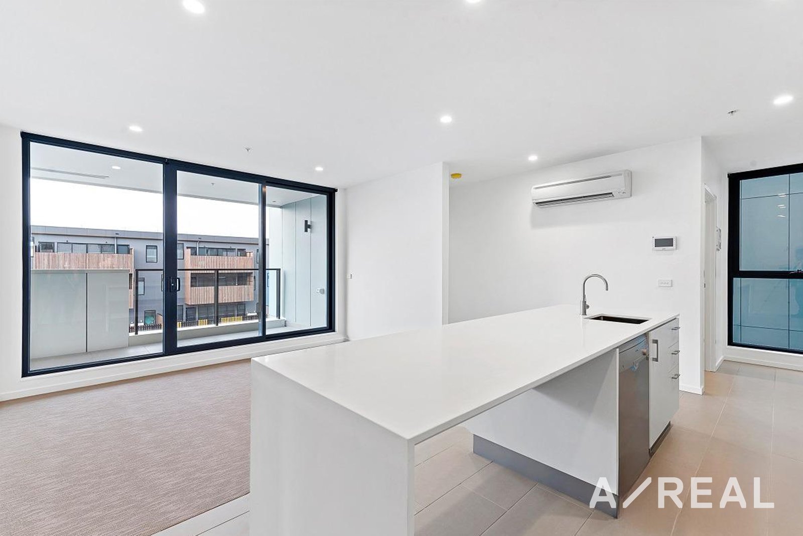 The open plan kitchen- living area is filtered with natural light and includes stainless steel appliances, an abundance of bench and cupboard space and a stainless steel dishwasher.