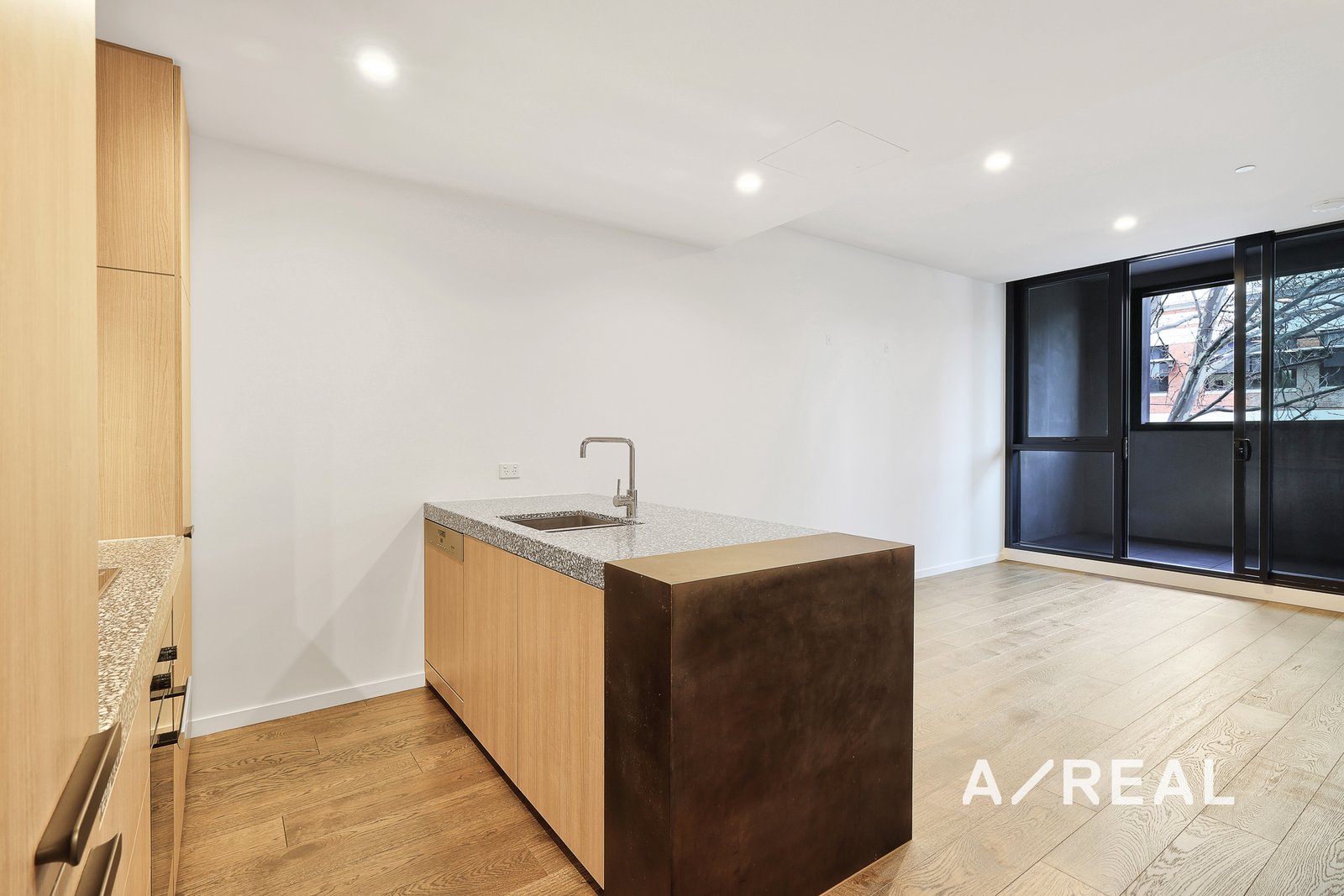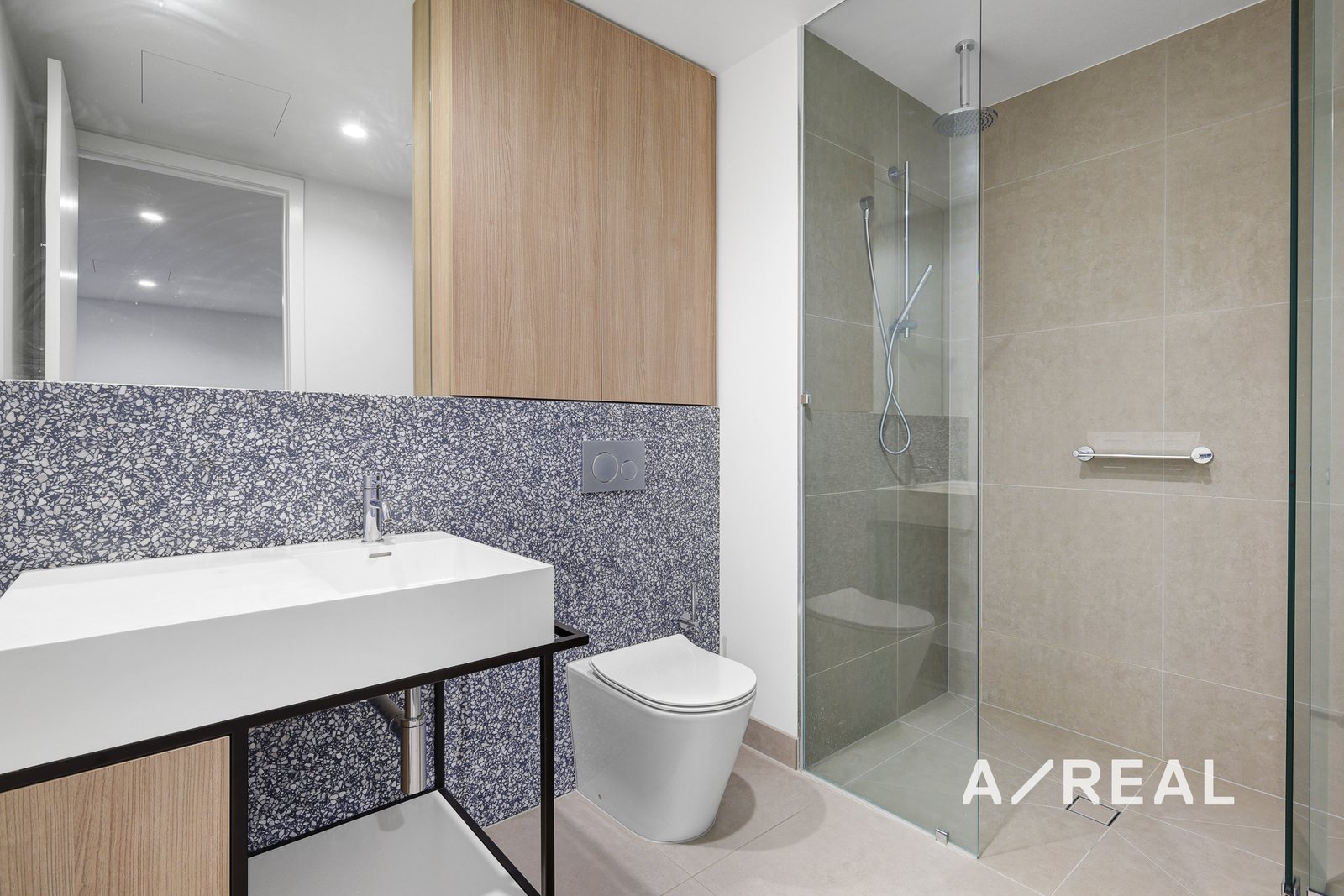 The main bedroom is generous in size with built-in robes and abundant natural light. The second bedroom is versatile and can be used as a study, guest room or additional living space (note: no external window). The bathroom is sleek and modern, featuring a walk-in rainfall shower and high-quality finishes.