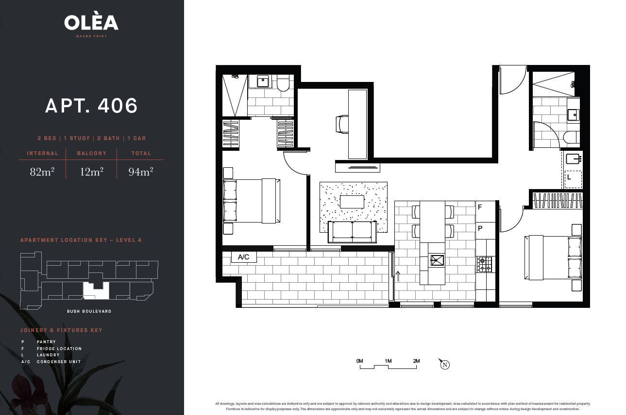 Finest quality inclusions and interiors, boasting two spacious bedrooms with convenient built in mirrored robes, paired with two equally stylish bathrooms featuring large walk in shower. Entertain your guests with the vast open-plan living/lounge area and superb dining space, complimented with beautiful balcony.
