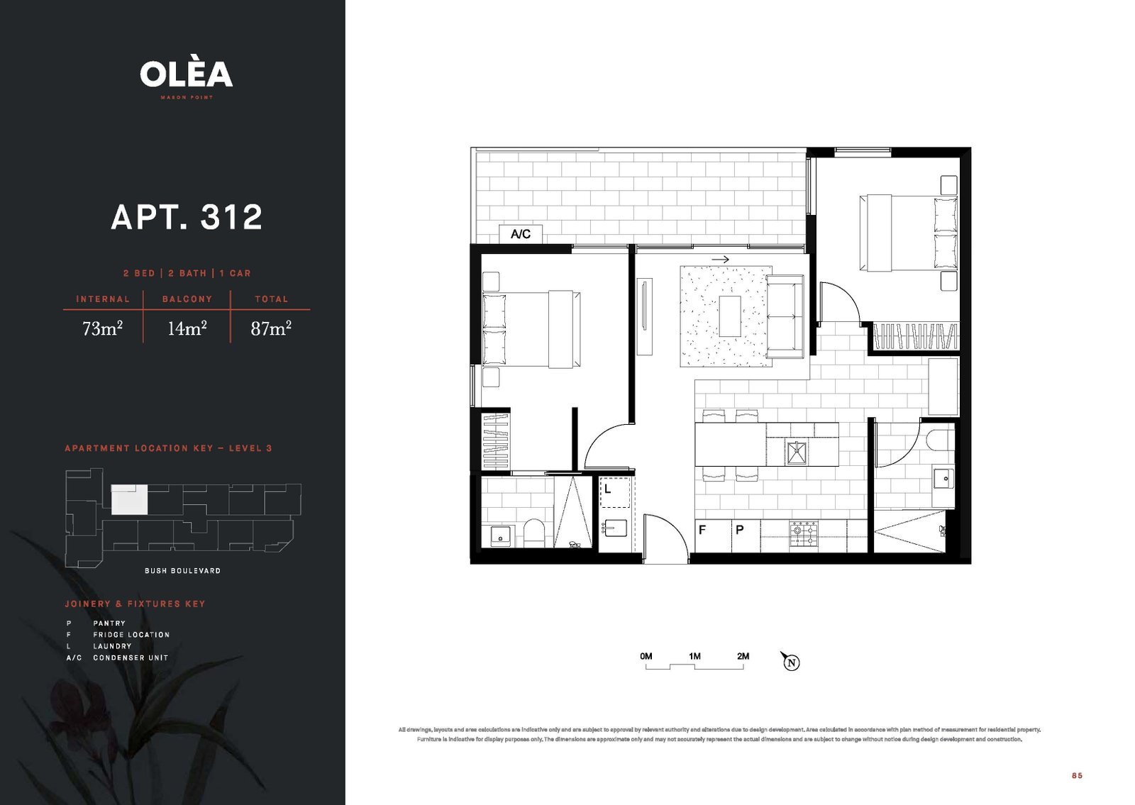 Finest quality inclusions and interiors, boasting two spacious bedrooms with convenient built in mirrored robes, paired with two equally stylish bathrooms featuring large walk in shower. Entertain your guests with the vast open-plan living/lounge area and superb dining space, complimented with beautiful balcony.