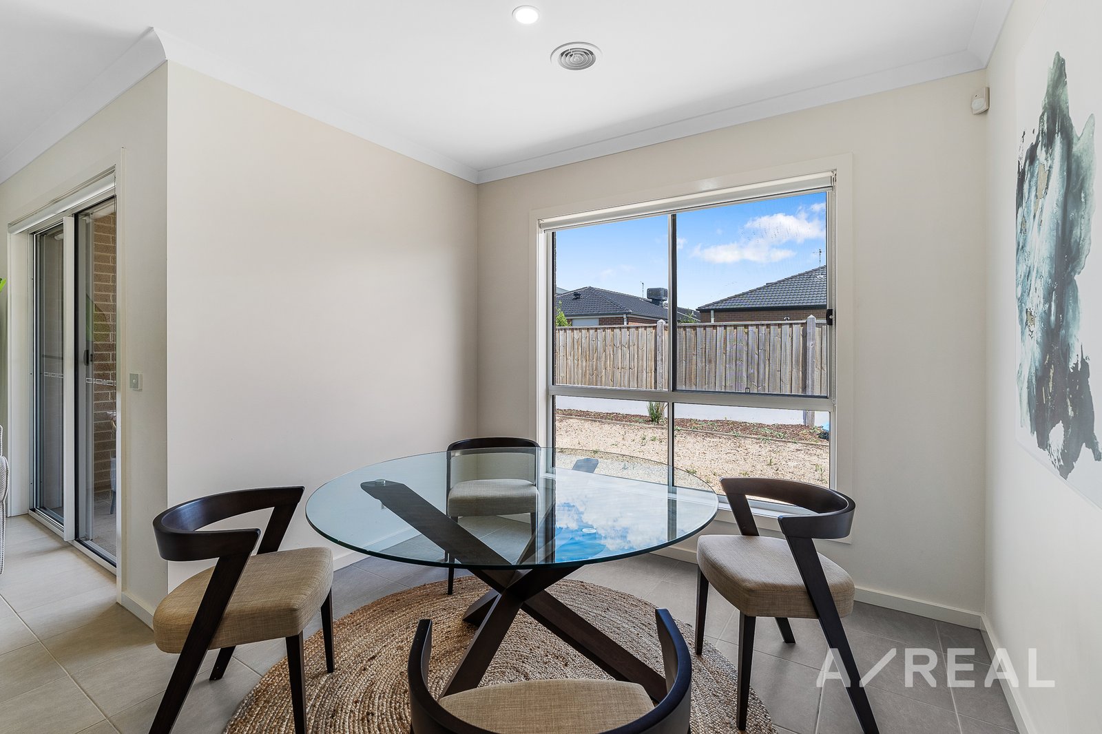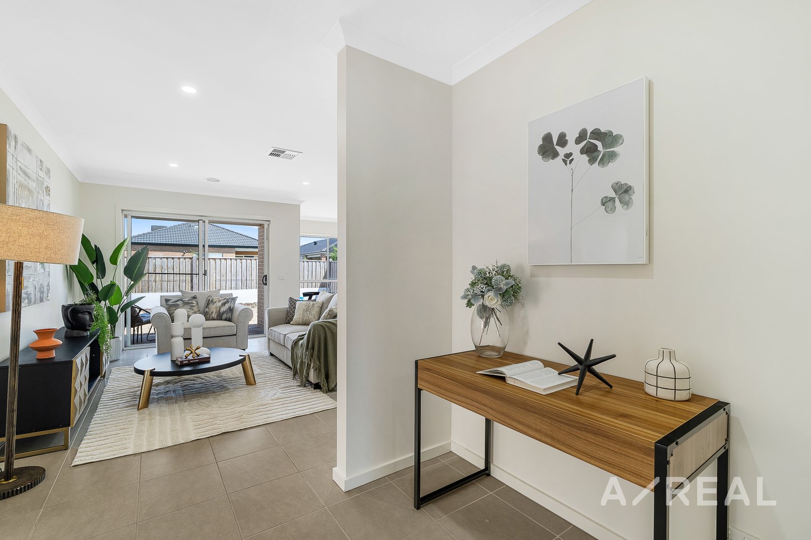 Embrace the warmth of family living in this enchanting four-bedroom, two-bathroom haven, nestled on a tranquil street in the heart of Tarneit. As you step into this inviting residence, a sense of home envelopes you, starting with the spacious open-plan living area that beckons shared moments and laughter. A convenient study nook promises a dedicated space for productivity, ideal for those times you need to work at home. The carpeted bedrooms, each adorned with built-in robes, provide a serene retreat for every family member. The main bathroom boasts ample vanity storage, while a separate shower and bath offer a touch of luxury. The master suite is a relaxing sanctuary with a walk-in robe and a twin-vanity ensuite. The light-filled interior showcases a bright kitchen with a central island bar, set against easy-care tiled floors. Stone bench tops, stainless steel appliances, a dishwasher, and gas cooking will make meal prep a breeze. The adjoining dining area frames a window view over the yard, with a seamlessly connected covered alfresco space-a perfect backdrop for outdoor gatherings. Beyond the beauty lies practicality: ducted air conditioning, a spacious laundry room, and a double-car garage with internal access. The fully-fenced sunny backyard, with low-maintenance grounds, ensures privacy and a safe play area for children. Strategically positioned just minutes away from parks, schools, childcare facilities, and major shopping centres, this property epitomizes convenience.