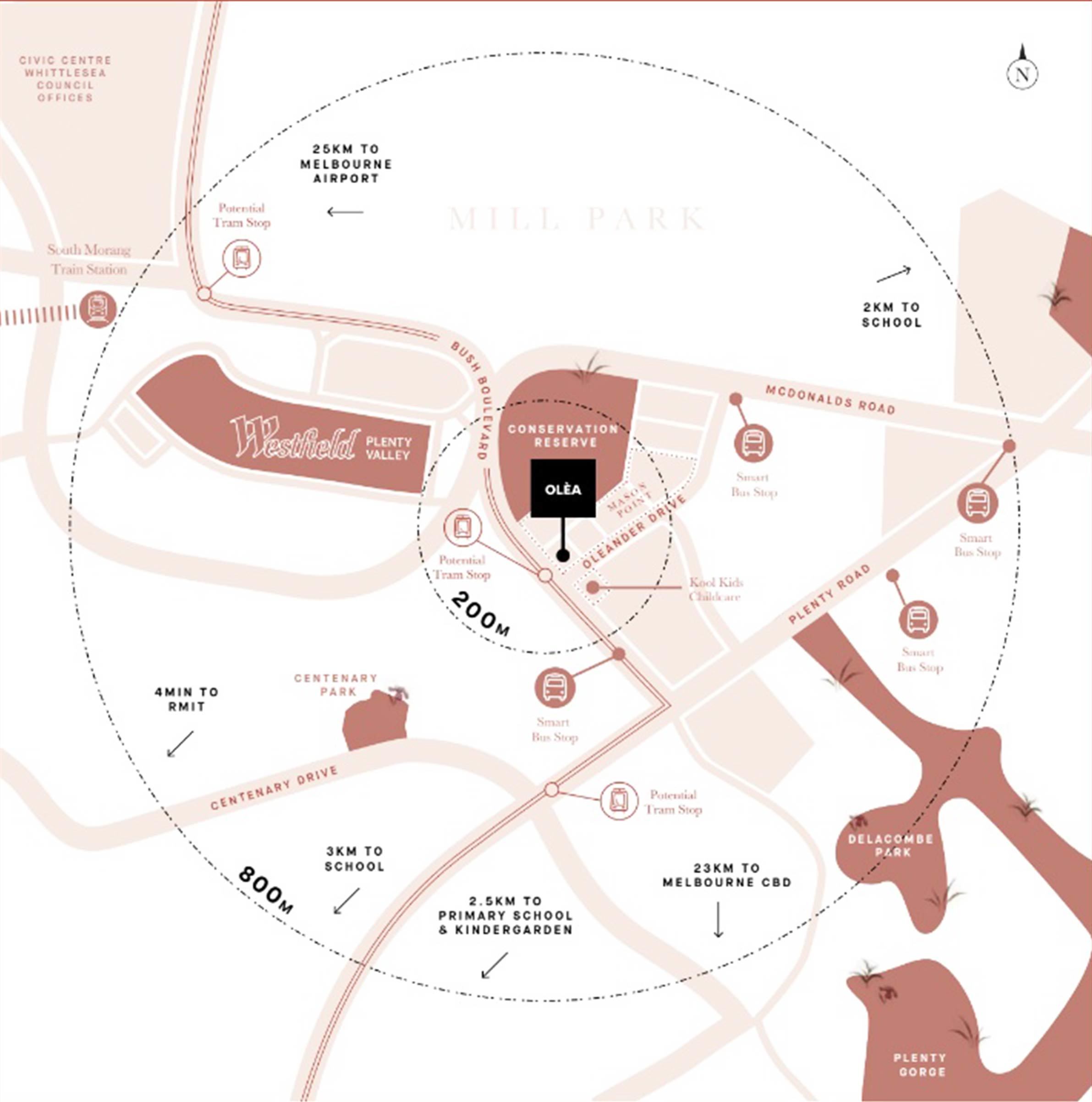 Location is everything at Mason Point for its 600 plus residents already living in the area and the features are endless: Uni Hill Factory Outlet is just around the corner and just a short drive from the Metropolitan Ring Road. Only 200 metres to Westfield Plenty Valley, a 4-minute drive to RMIT University and Kool Kidz Childcare Centre located right across the road. Taking public transport is a no brainer with South Morang Train Station just 800 metres away, buses and trams are also available on Plenty Road and major infrastructure investment is currently on the cards with a tram line extension up Plenty Road and through Bush Boulevard and Mason Point.