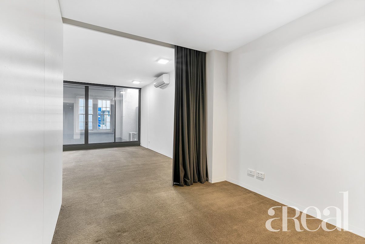 The 1 Bedroom modern apartment comprises a large air-conditioned living/dining room opening out through sliding doors to a light and bright enclosed balcony, well-equipped galley style kitchen featuring stone benches and stainless steel Smeg appliances, European laundry, stylish bathroom and bedroom with full-length robes. On the rooftop, a shared terrace and BBQ area offer a relaxing space to entertain and enjoy the sweeping city outlook.