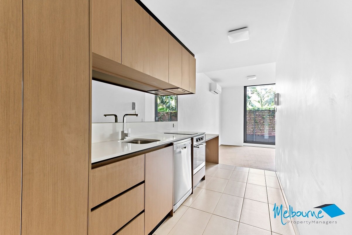 This exceptionally designed 1 bedroom apartment offers a modern functional spaced bathroom with ample storage and state of the art kitchen with stone bench tops, glass splash-back, stainless steel appliances and dishwasher. The air-conditioned living space is well designed and light fitted with floor to ceiling windows and glass sliding doors opening to your own private balcony creating a spacious, open and bright atmosphere that is guaranteed to impress. The bedroom has built in robes, a built in study desk in the living area and double glazed windows for the balcony.