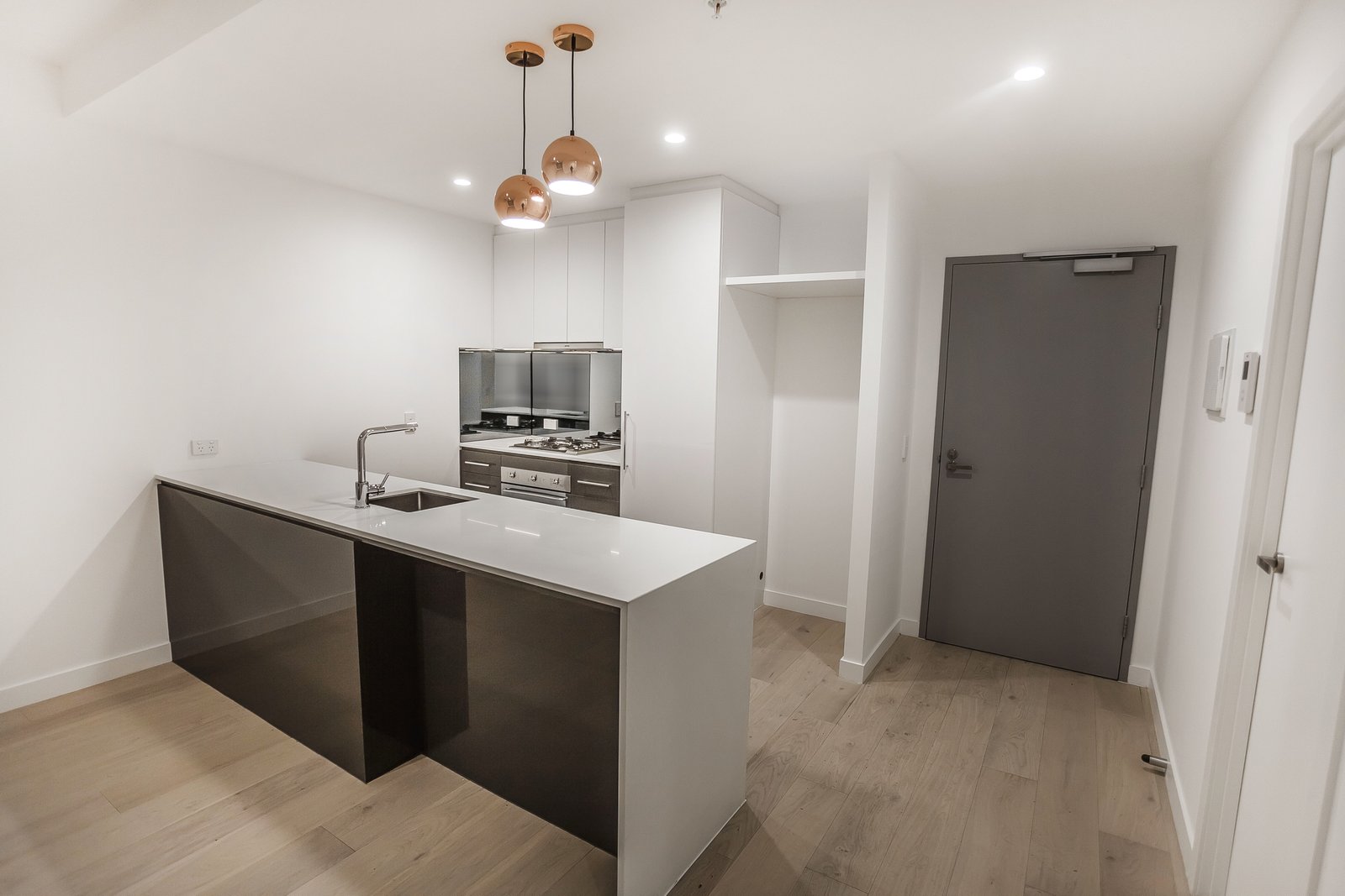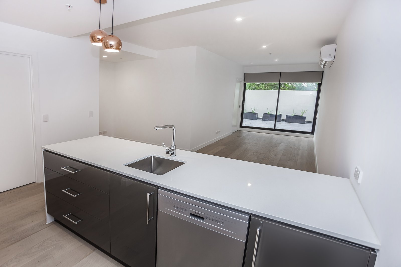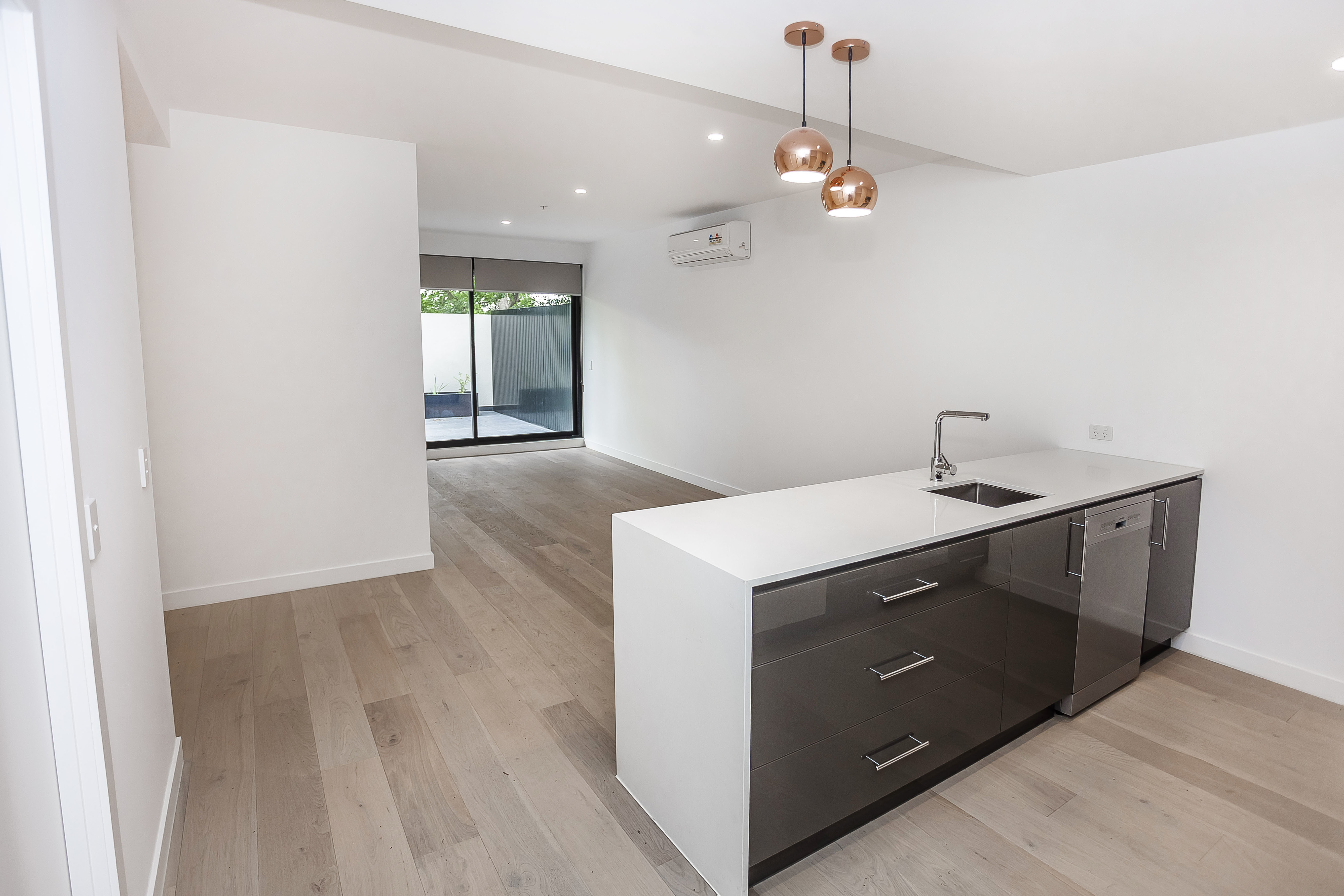 A spacious one-bedroom apartment, featuring stylish hardwood timber flooring and ample storage space. The air-conditioned living space is well designed with glass sliding doors opening to your own private balcony creating a spacious open and bright atmosphere that is guaranteed to impress. The carpeted bedroom is generous in size and has built-in robes for your storing needs. The state of the art kitchen has stone benchtops, a tiled splashback, gas appliances, and a dishwasher. The apartment also offers a large modern bathroom, with a separate European laundry facility.