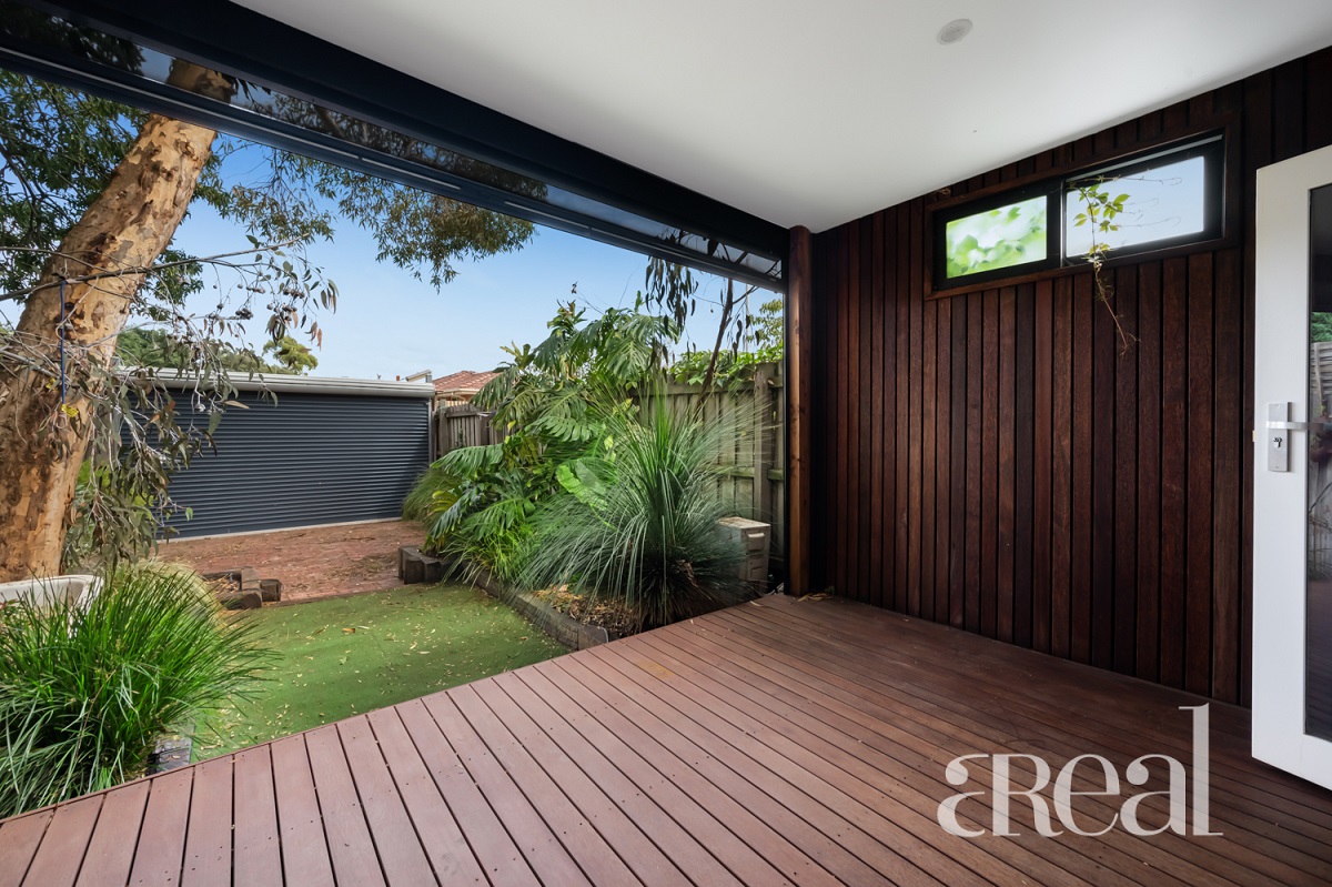 Also comprising of an open plan kitchen/living area with beautifully high barn-like ceilings, ample cupboard & storage space, stainless steel appliances and split system, Bi-fold doors opening up to an undercover pergola also including blinds for those colder Melbourne months with a step down into a low maintenance courtyard and lock-up car space with garage remote accessed roller door.