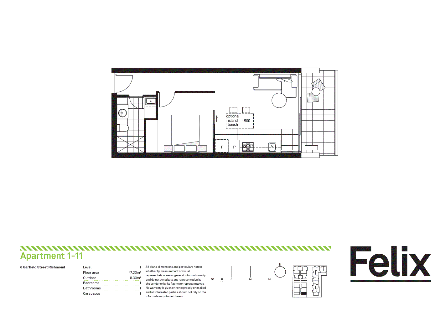 Modern one-bedroom apartment including open plan living/dining area with split system heating and cooling, state of the art kitchen with stone benchtops and stainless steel appliances and dishwasher. Large bedroom with built-in robes, large bathroom with laundry facilities, secure parking and storage cage included.