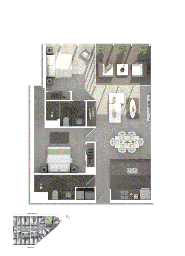 Both bedrooms with mirrored built in robes, en-suite bathroom off the master bedroom and a spacious main bathroom. Other features include European laundry inside the apartment, basement car space and storage cage.