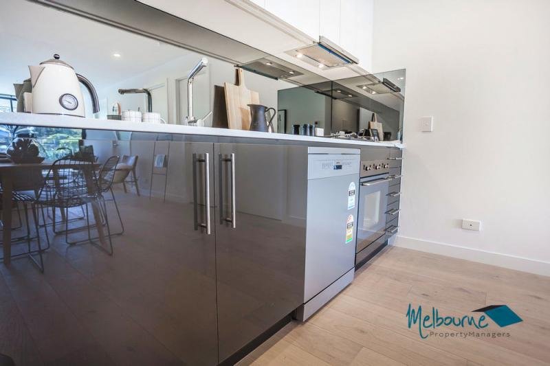 A brand new 1 bedroom apartment, featuring stylish hardwood timber flooring and ample storage space. The air-conditioned living space is well designed with glass sliding doors opening to your own private balcony creating a spacious open and bright atmosphere that is guaranteed to impress. All carpeted bedrooms are generous in size and have built in robes for your storing needs. The state of the art kitchen have stone bench tops, tiled splashbacks, gas appliances and dishwasher. The apartment offers, large modern bathrooms, with separate European laundry facilities.