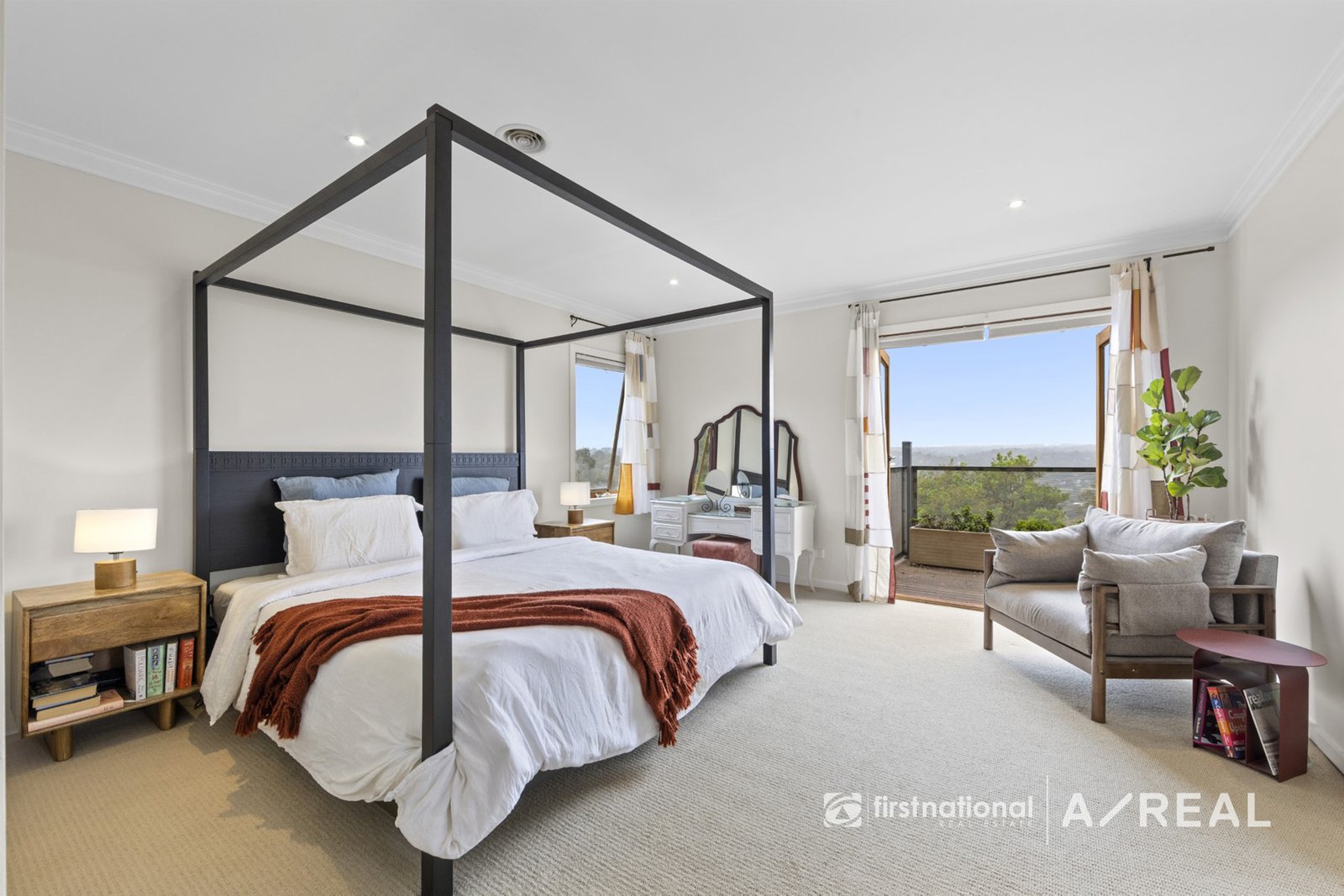 The first-floor master suite is a retreat of very generous proportions, featuring a spa ensuite, dual built-in robes for abundant storage, and a private balcony framing mesmerizing ranges views. Two additional bedrooms, one blessed with its own captivating panorama, share a tastefully appointed family bathroom.