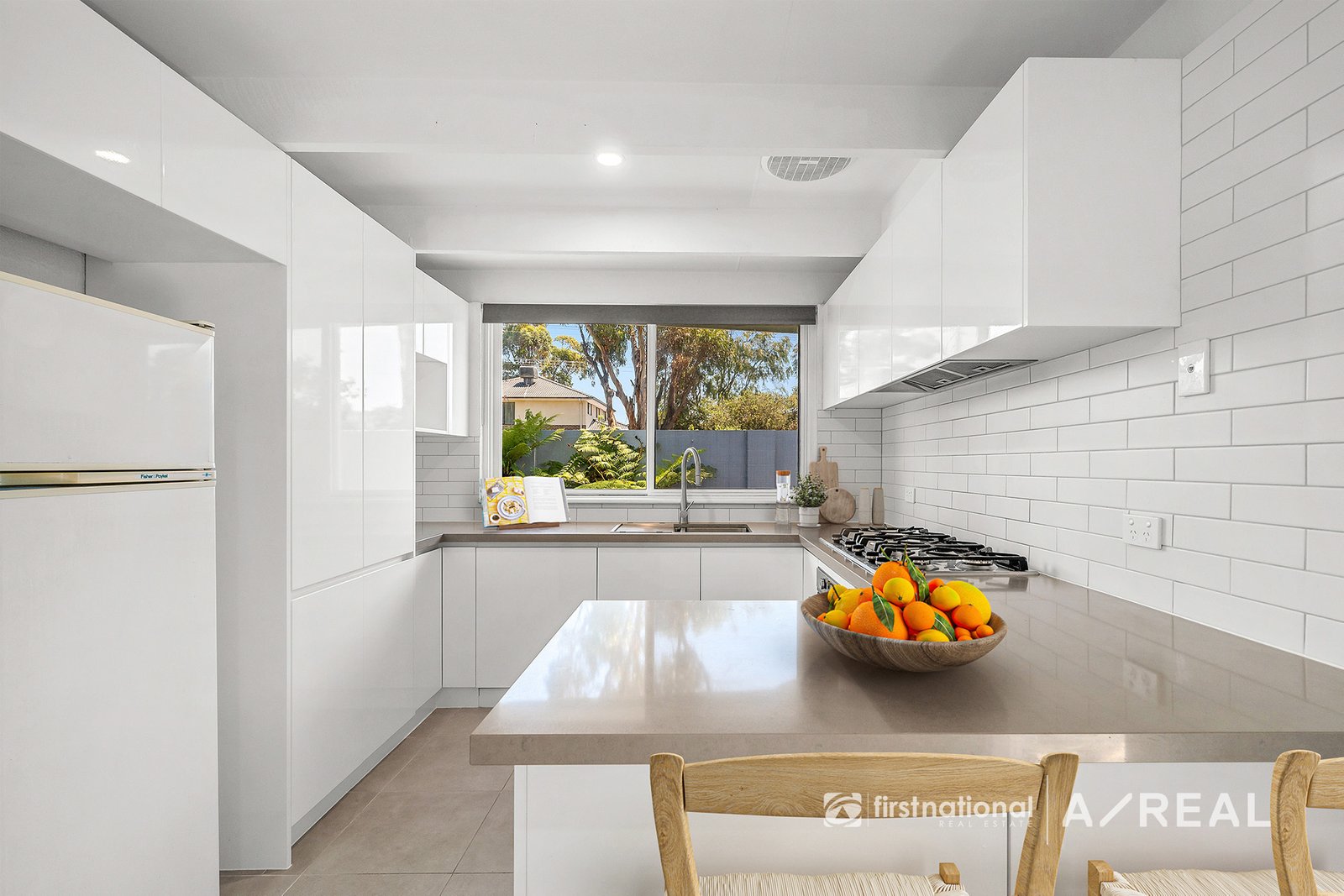 Brand new and stylish kitchen boasting stone benchtops, an integrated dishwasher, ample cupboard space and a 900mm gas cooktop.