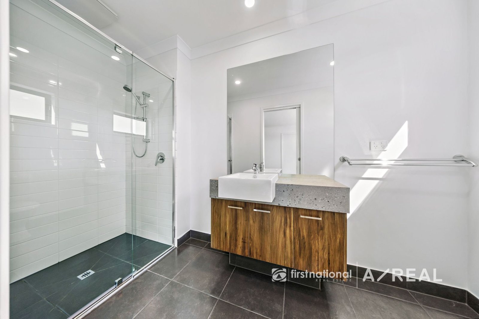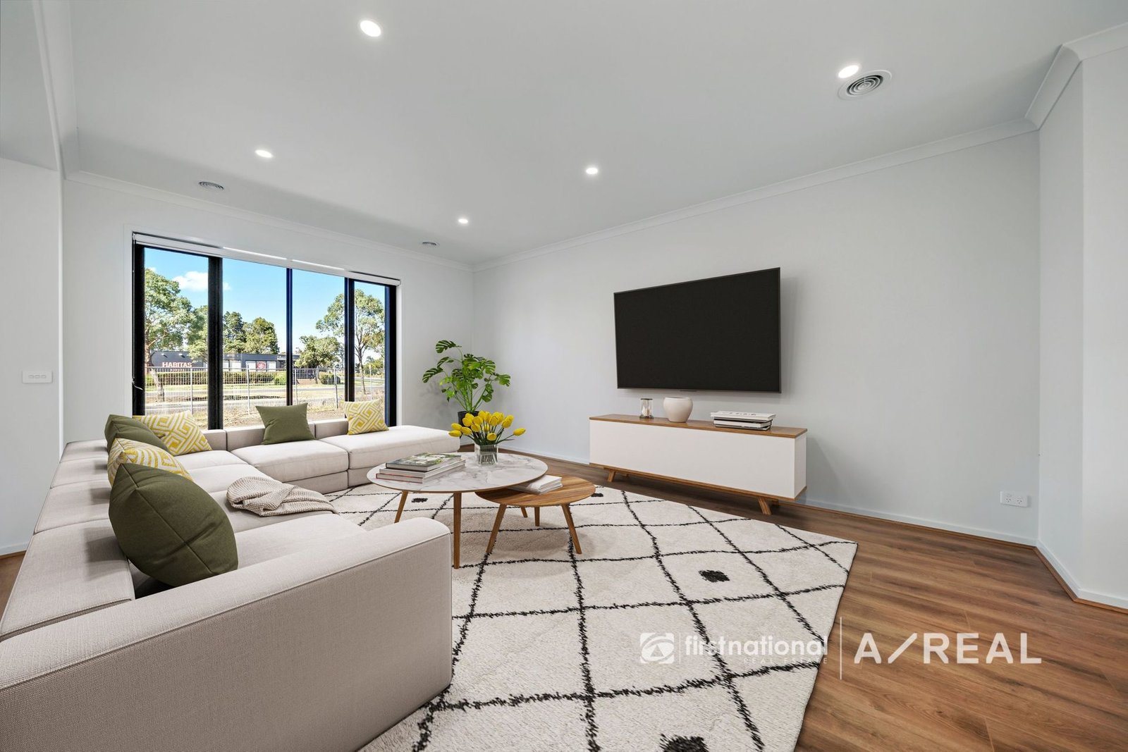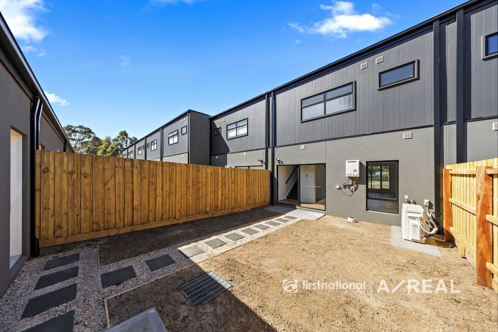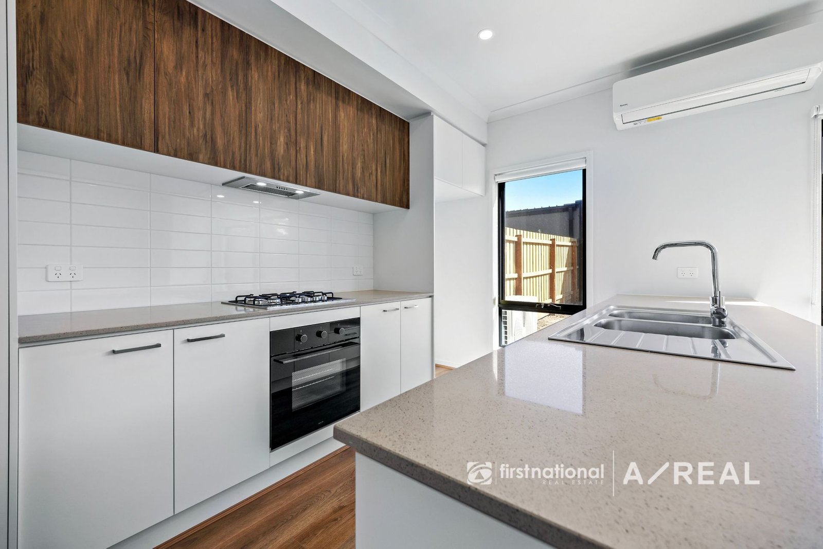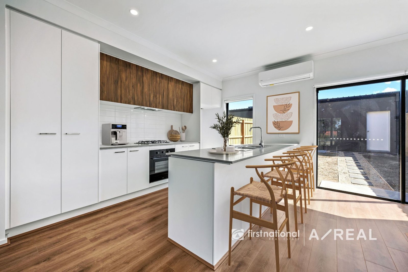 The open-plan design is bathed in natural light and features stylish neutral tones and high ceilings throughout. The sleek kitchen is equipped with stone benchtops, premium cabinetry, and stainless steel appliances, making it perfect for both everyday living and entertaining. The living and dining areas flow effortlessly to a private rear courtyard, providing a serene space to relax and unwind.