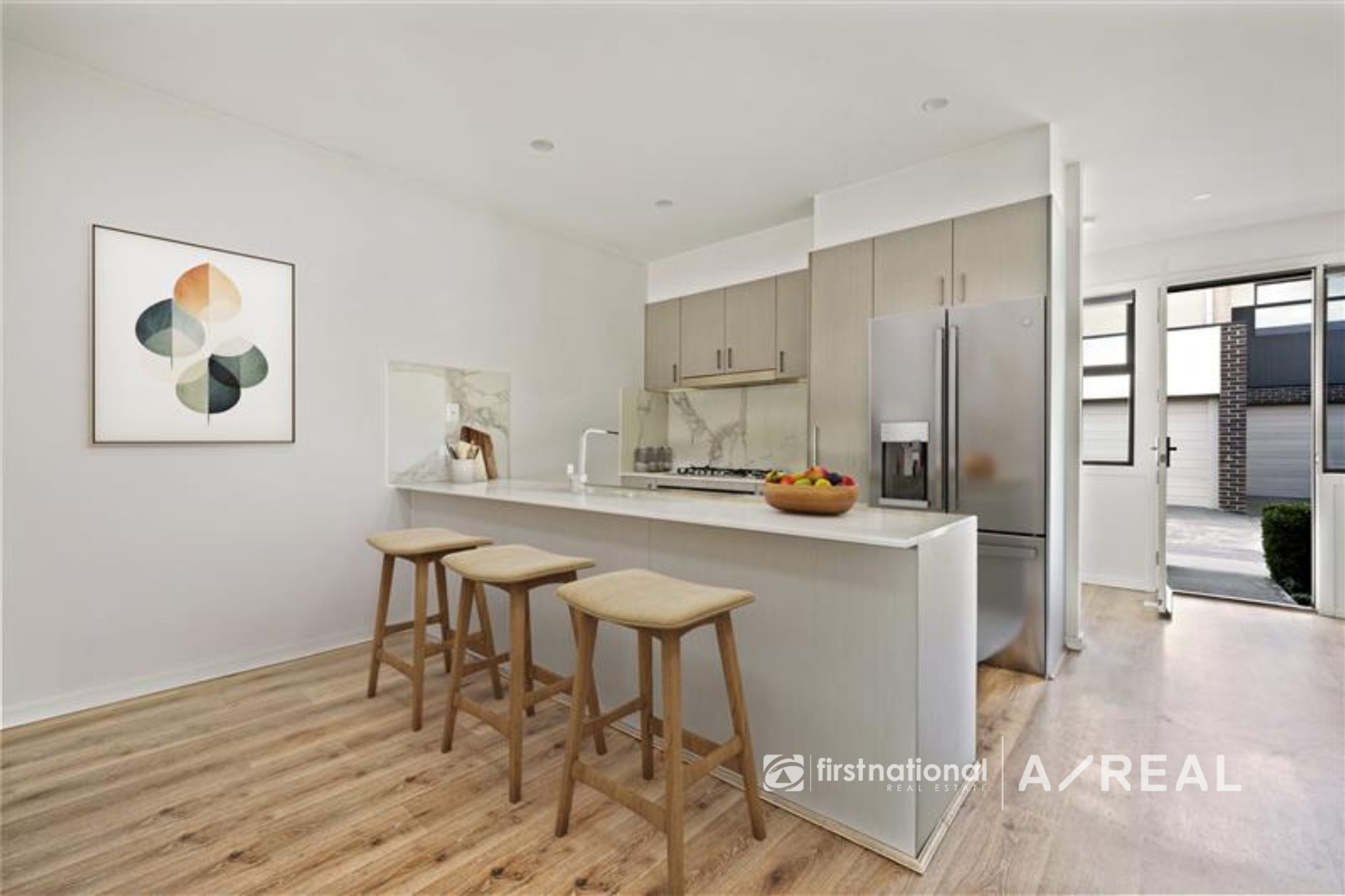 Step inside to a spacious open-plan living and dining area, filled with natural light and perfect for both entertaining and everyday living. The stylish kitchen is a highlight, featuring stone benchtops, stainless steel appliances, and plenty of storage. A dedicated study nook adds flexibility for those working or studying from home.