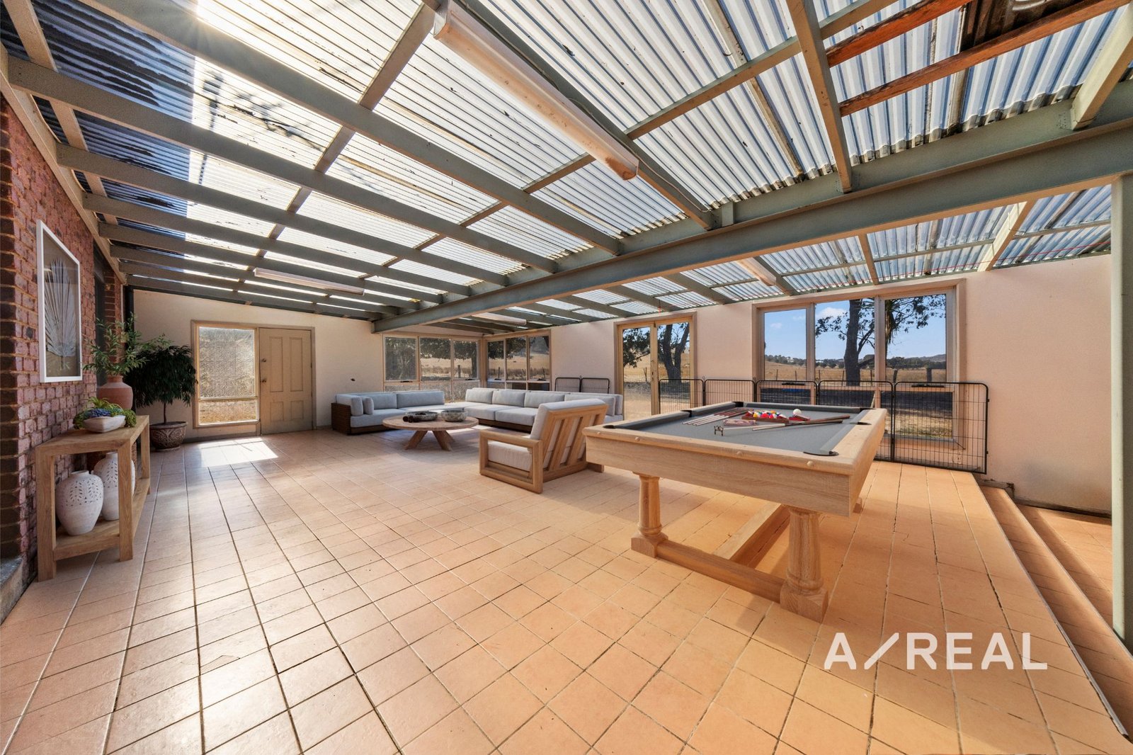 A generous family room features a wood heater and clever firewood storage, while the large enclosed sunroom is ideal for gatherings all year round, offering uninterrupted views of the rolling hills.