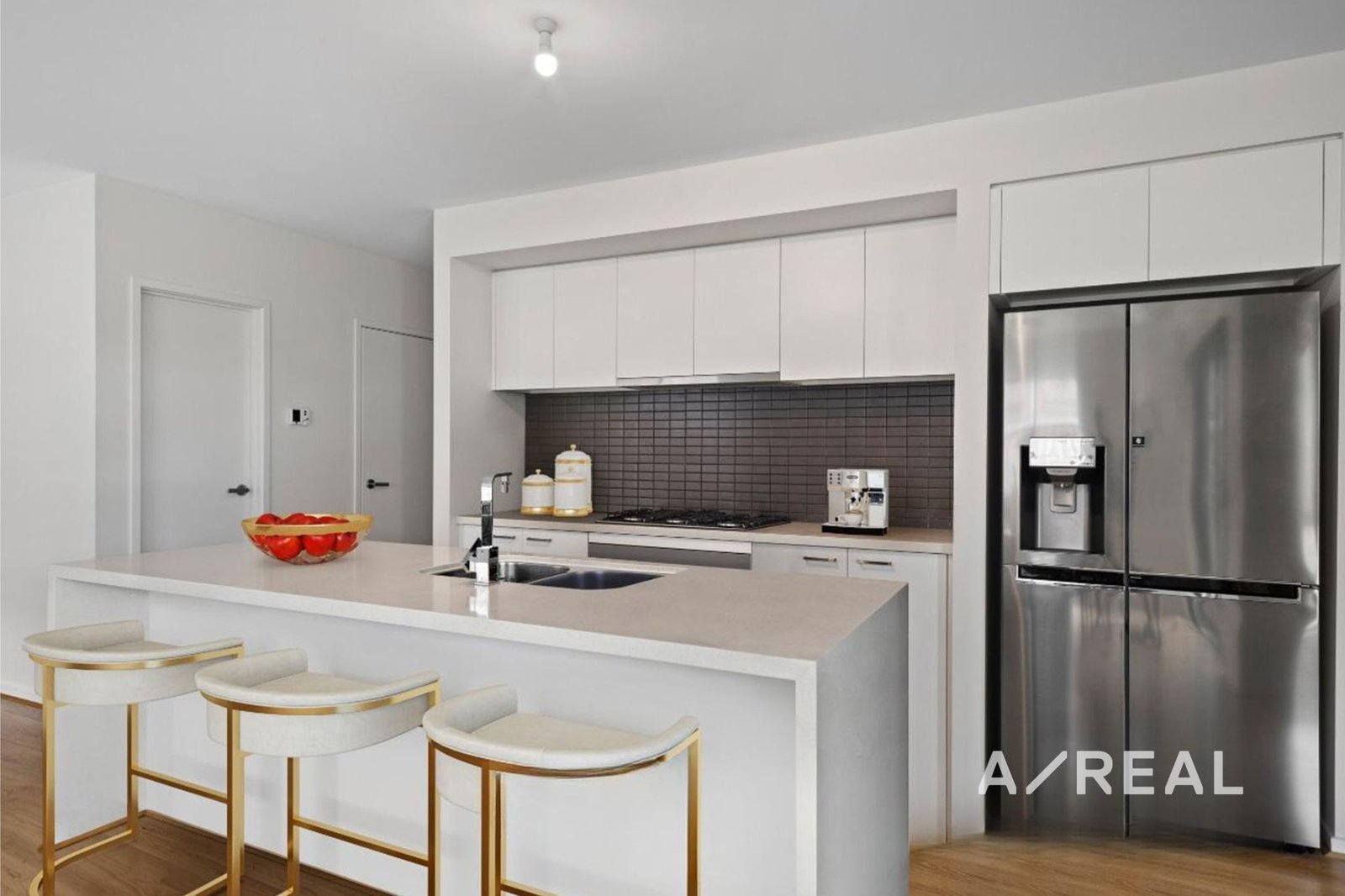 Everyday life will centre around the well-equipped kitchen, with quality stainless steel appliances, 40mm stone benchtops and a breakfast bar, as well as views over the air-conditioned living and dining room. A sliding door invites you to step out to the alfresco where you can start your day with a coffee in hand.