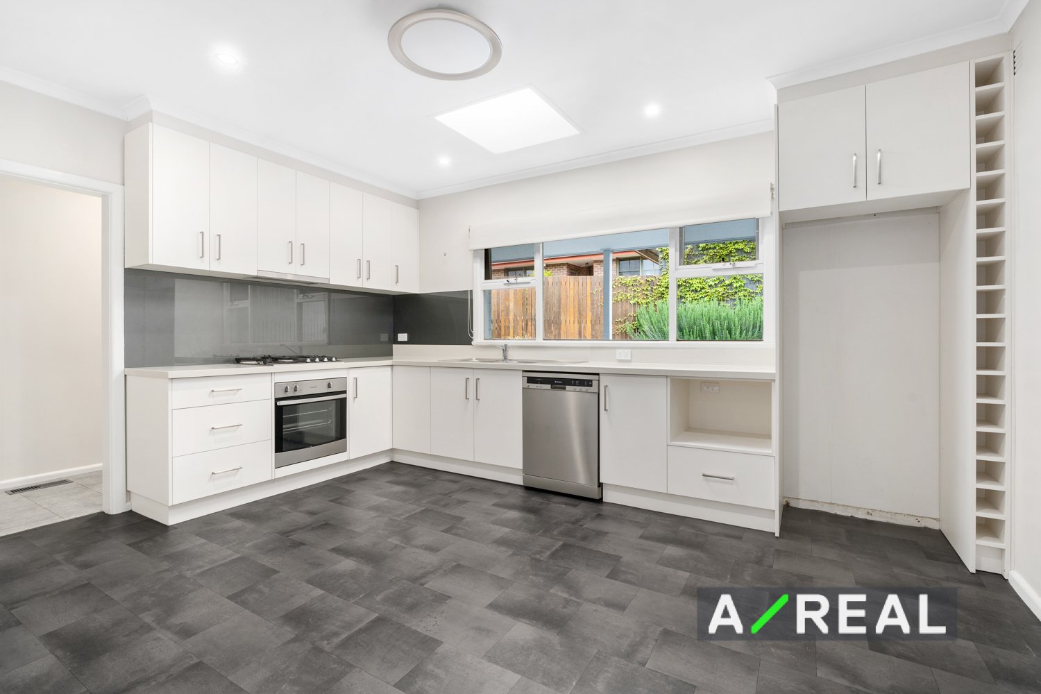 - Fully equipped kitchen includes quality stainless-steel appliances, sparkling glass splashbacks, stoner benchtops, abundant cabinetry including wine storage