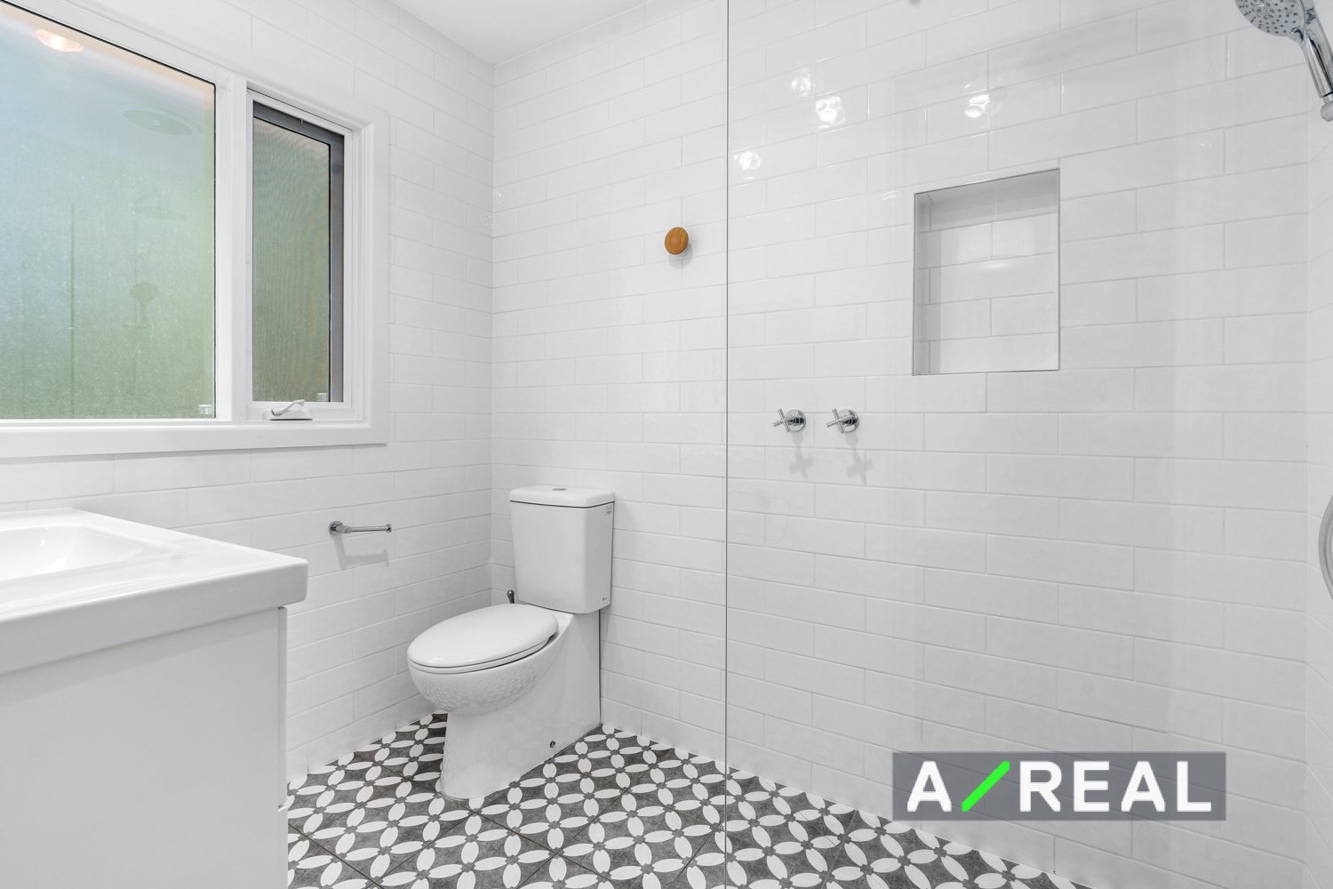- A sleek family bathroom and laundry