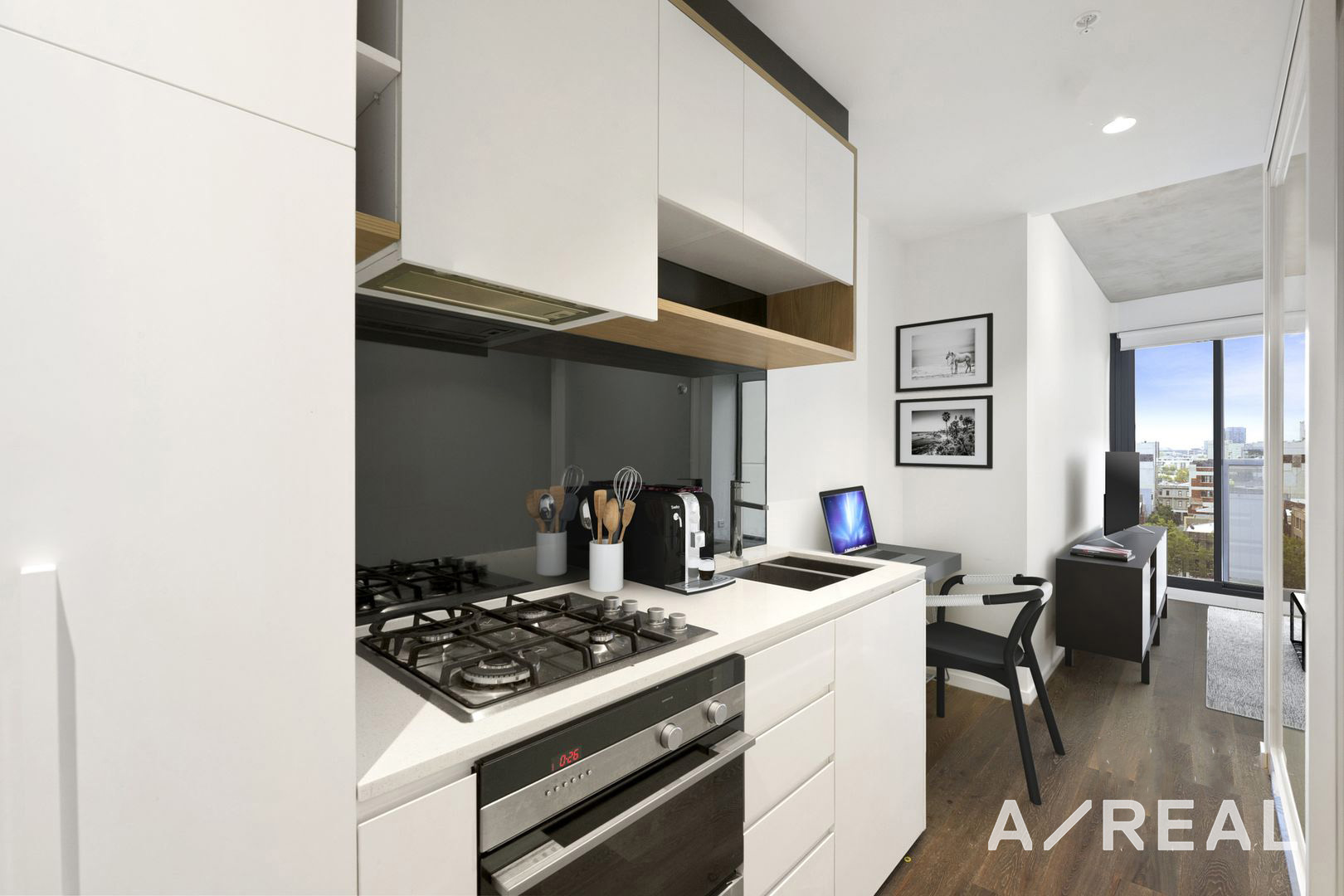 The apartment features functional modern layout with excellent fixtures and fittings, gourmet kitchen with gas cooking stove top, timber flooring, built in wardrobe, split system cooling, internal laundry, floor to ceiling blinds.