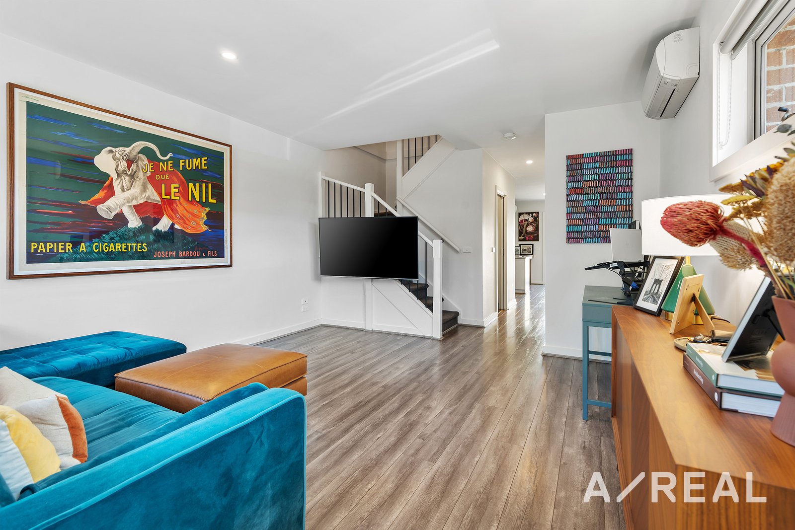 Upstairs, you'll find an oversized primary bedroom with a walk-in robe, split-system air-conditioning/heating, and a generously-sized private ensuite. Additionally, there are two more generous bedrooms on the upper level, each equipped with built-in robes and split-system air-conditioning/heating for comfort.