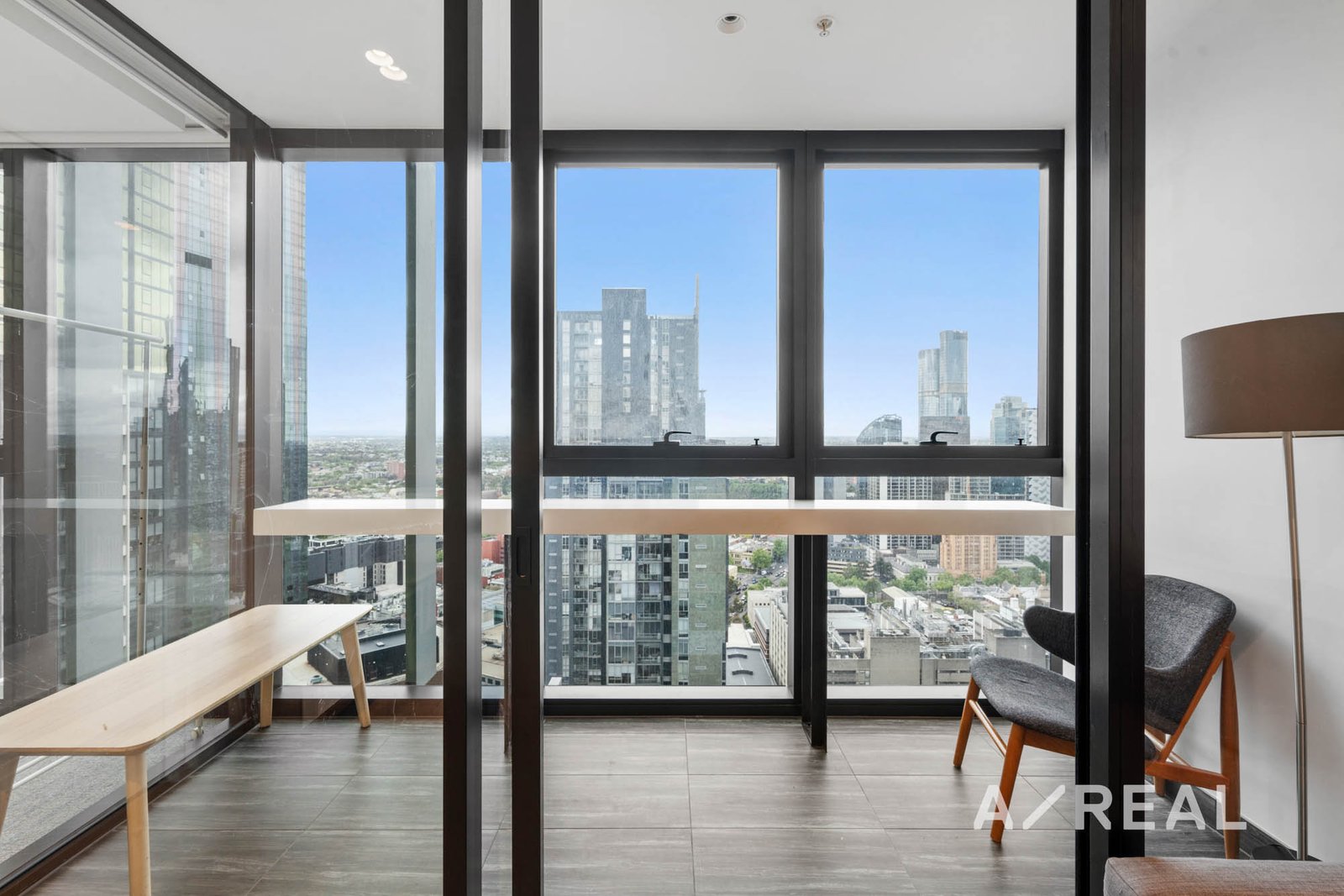 There are two bedrooms, filled with an abundance of natural light and enjoys spectacular views across Melbourne offering room for a well sized bed with bed side table and mirrored built in robes. Fitted with sleek bathroom offering plenty of space and complete with concealed Euro laundry.