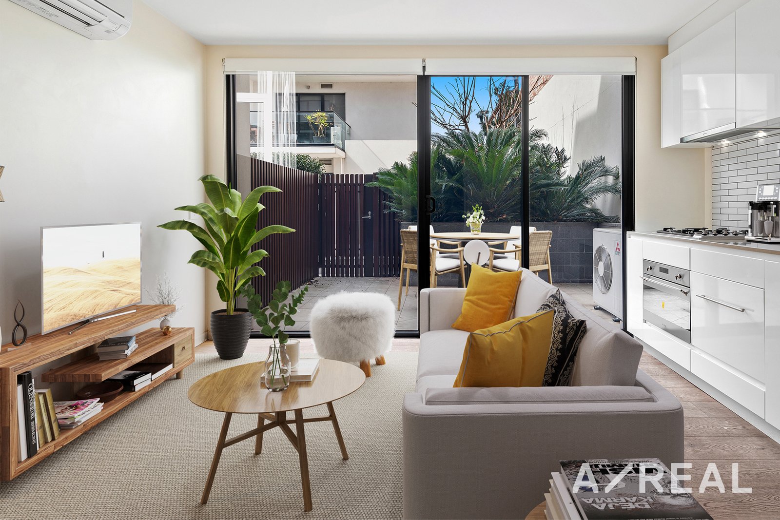 This stunning apartment features kitchen with stainless steel appliances, open plan living/dining area with split system heating and cooling leading to a private balcony. Two bedrooms with built in robes, large bathroom with modern fixtures and laundry facilities in the apartment.