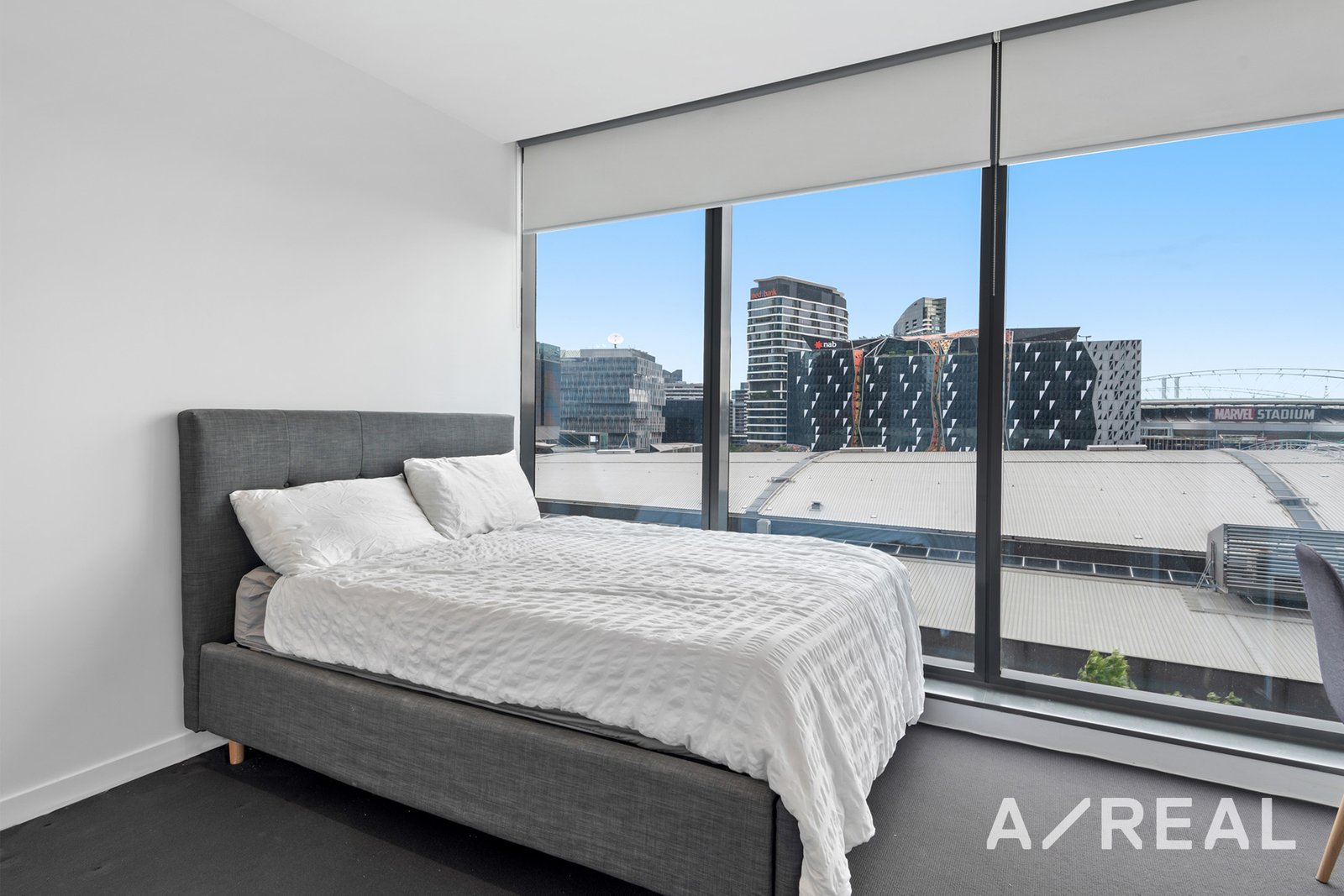 Commanding that impressive position with unblockable views of the Bolte Bridge/Marvel Stadium, the apartment showcases floor-to-ceiling windows, luxurious stone surfaces, and quality carpet running throughout, while a large balcony in the living area takes the unit to another level.