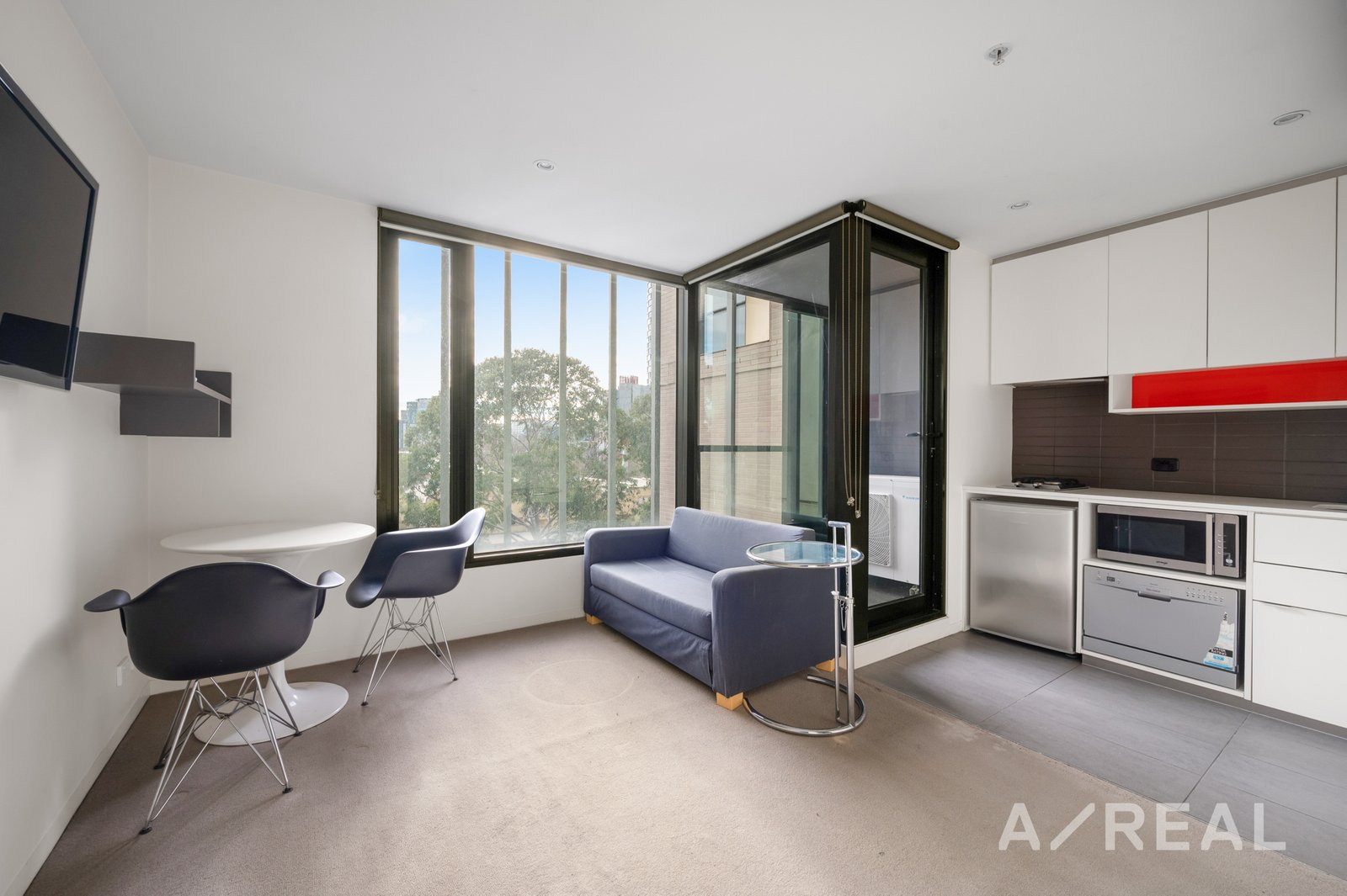Step inside to find a space designed for comfort and sustainability, where modern amenities meet urban elegance. The apartment features contemporary appliances, sleek stainless steel finishes, a convenient dishwasher, and a split system to keep you comfortable in any season. The in-unit laundry, complete with a washing machine and dryer, adds to the ease of living. Relax and unwind with the LCD TV in the cozy living area, or step out onto your private balcony to soak in the city vibes.