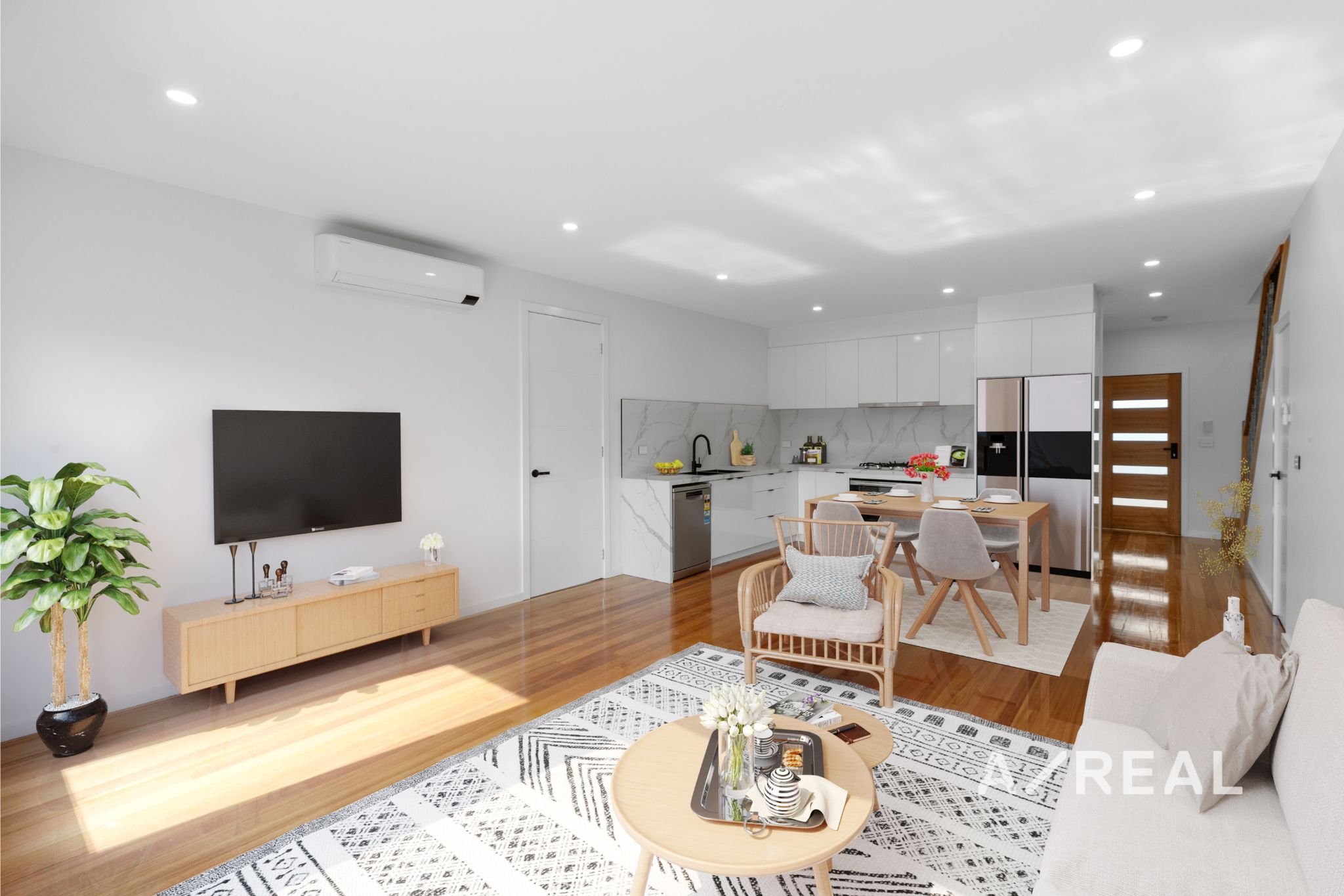 Step inside to discover expansive open-plan living areas with sleek floorboards flowing throughout the ground floor, providing a stylish space for relaxing and entertaining. The modern kitchens are equipped with high-quality stainless steel appliances and ample storage, ensuring easy meal preparation. Natural light fills these townhouses, enhancing their warm and welcoming feel.