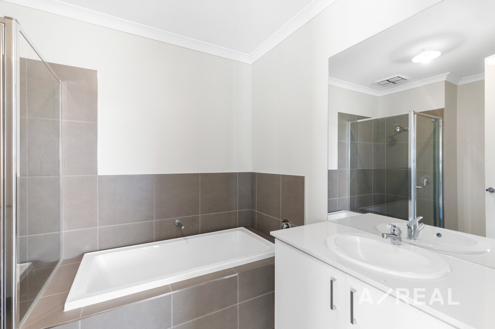 Each carpeted bedroom features built-in robes, providing a cozy retreat for every family member. The master suite is a true sanctuary, complete with a spacious walk-in robe and a luxurious twin-vanity ensuite. The main bathroom is equally well-appointed, featuring ample vanity storage, a separate shower, and a relaxing bathtub.