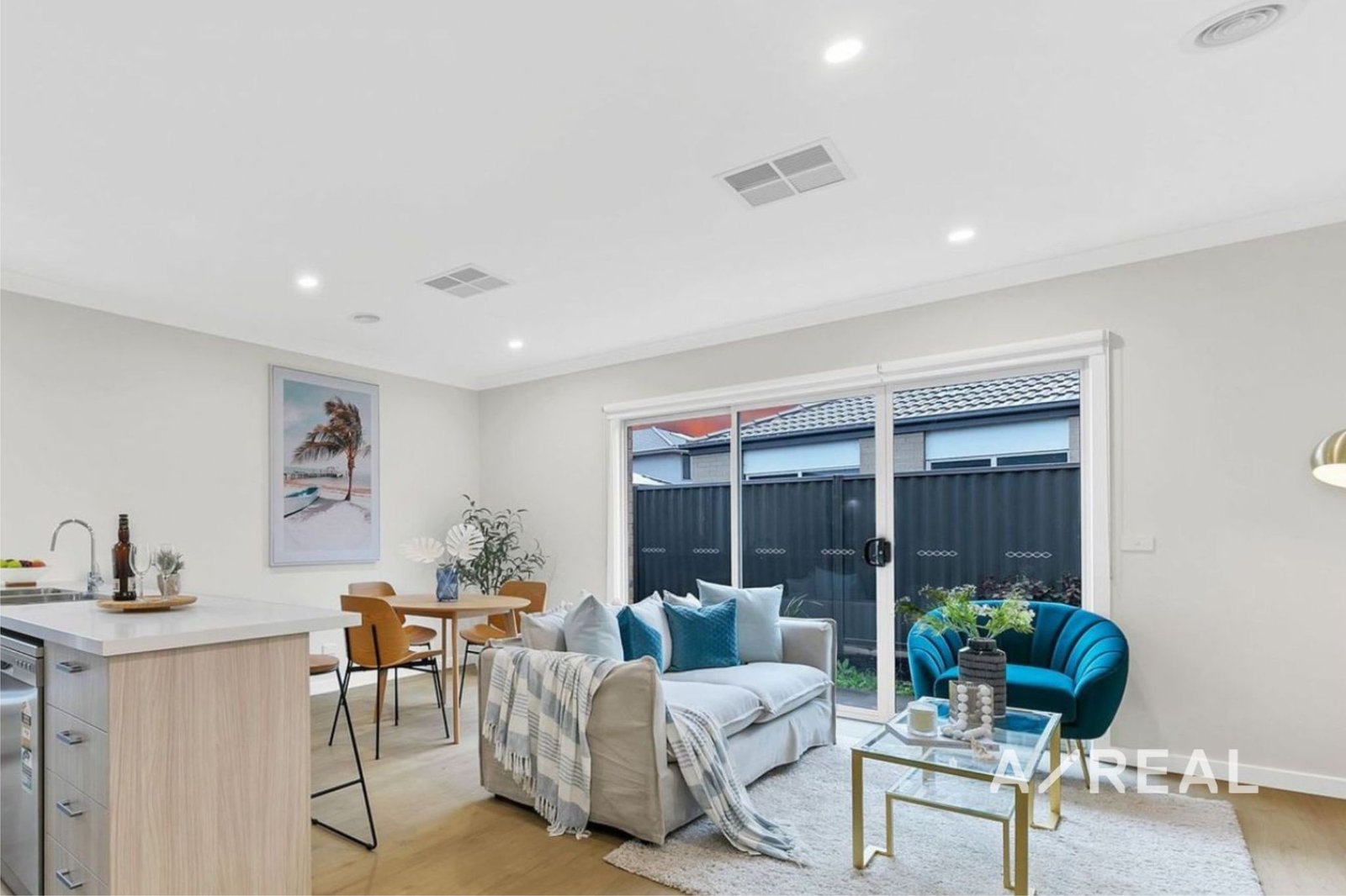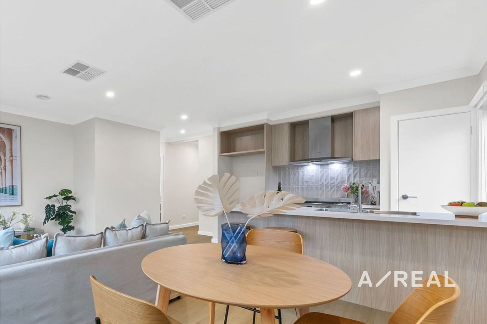 At the heart of the home lies an open-plan meals and living area, offering a seamless blend of space and sophistication. The kitchen boasts sleek stone benchtops, stainless steel appliances, and ample storage—ideal for the modern home chef. Additional conveniences include a large walk-in laundry and abundant storage throughout.